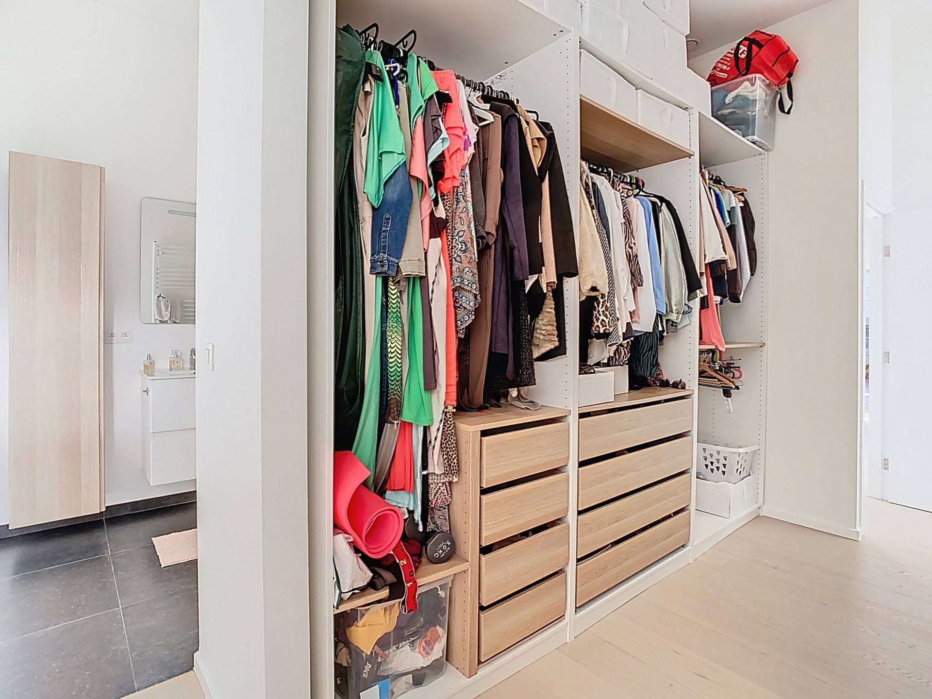 Suite parentale de +/- 33 m² comprenant la chambre 3 de 18,50 m², un dressing et une salle de douches (meuble double lavabo et douche à l’italienne).