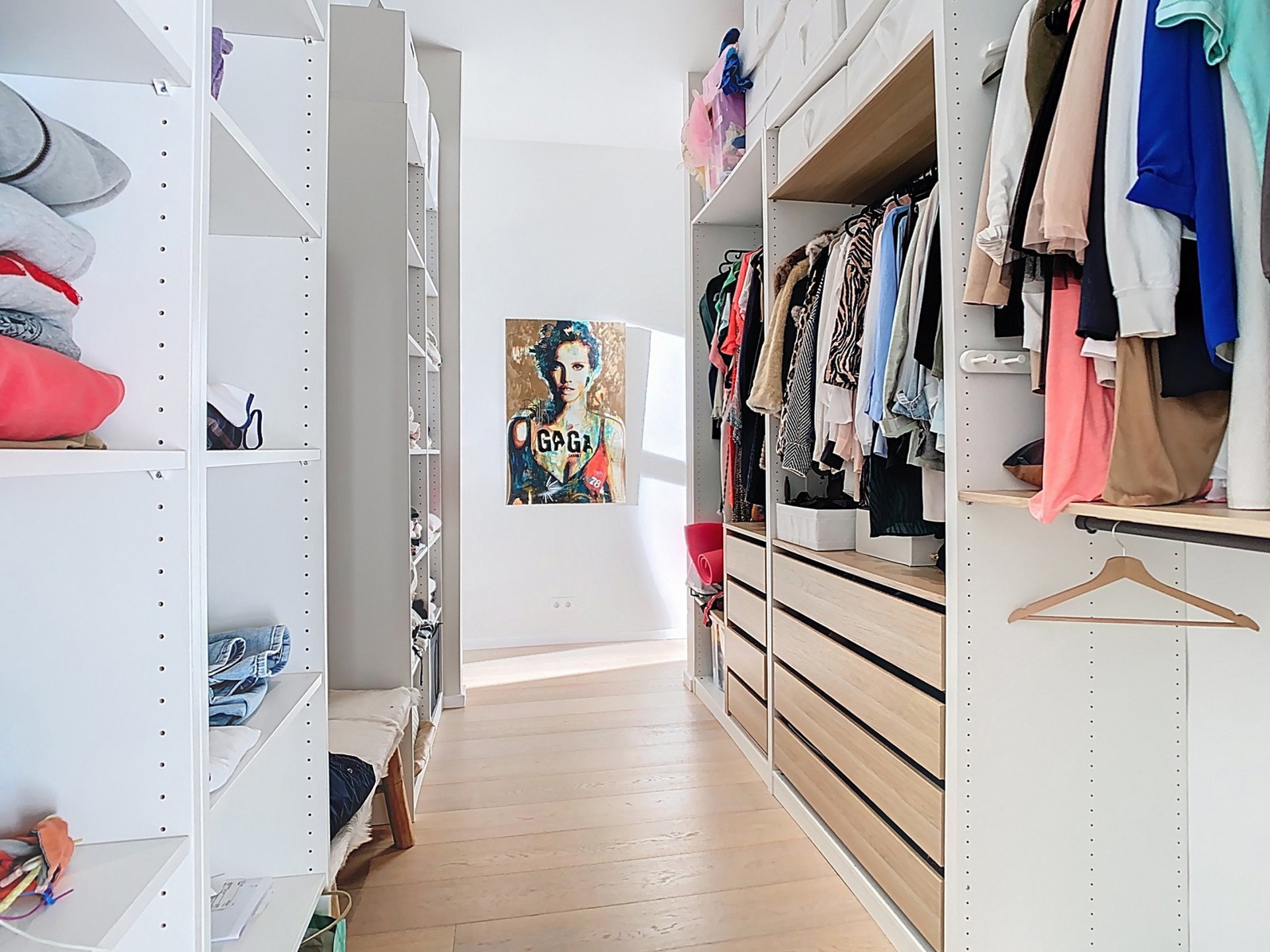 Chambre 1 de 20 m² avec meuble bureau et dressing.