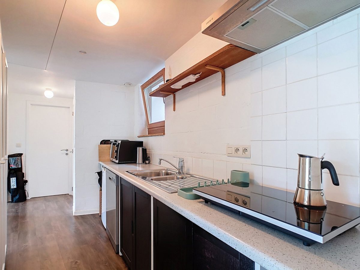 Cuisine équipée de 7 m² (taque électrique, frigo avec partie congélateur, hotte).