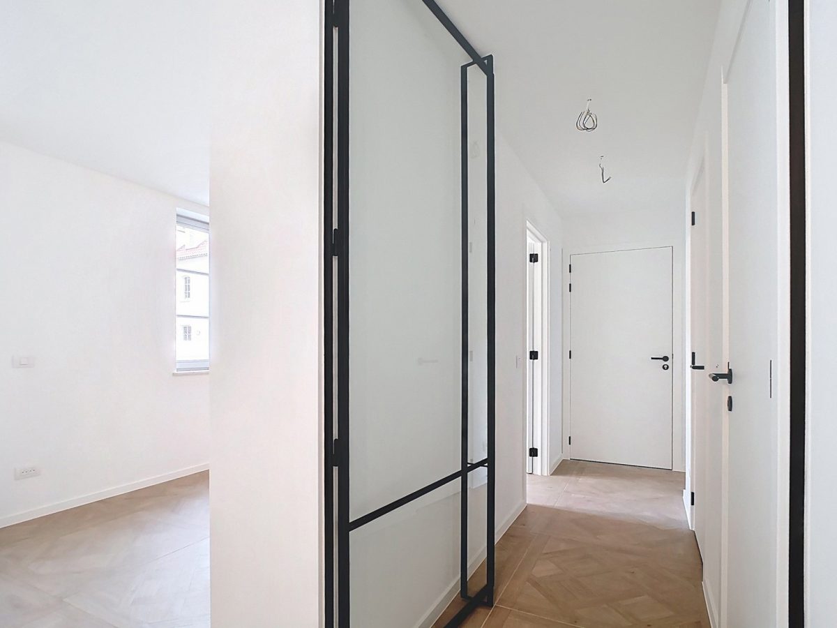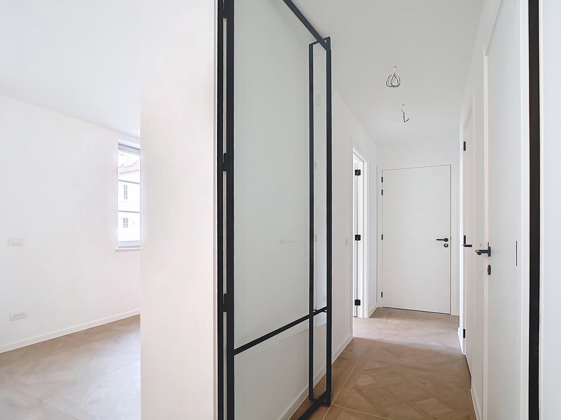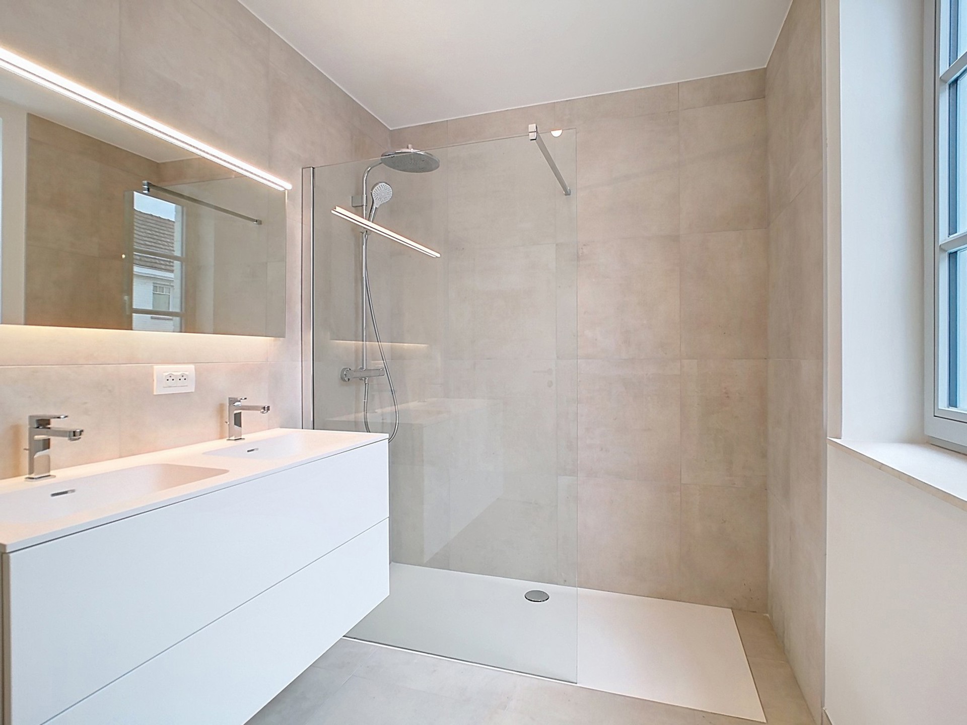 Surface habitable +/- 86 m² + terrasse privative de 10 m² + 1 cave de 12,5 m² + 1 emplacement de parking à l’intérieur de l’immeuble.