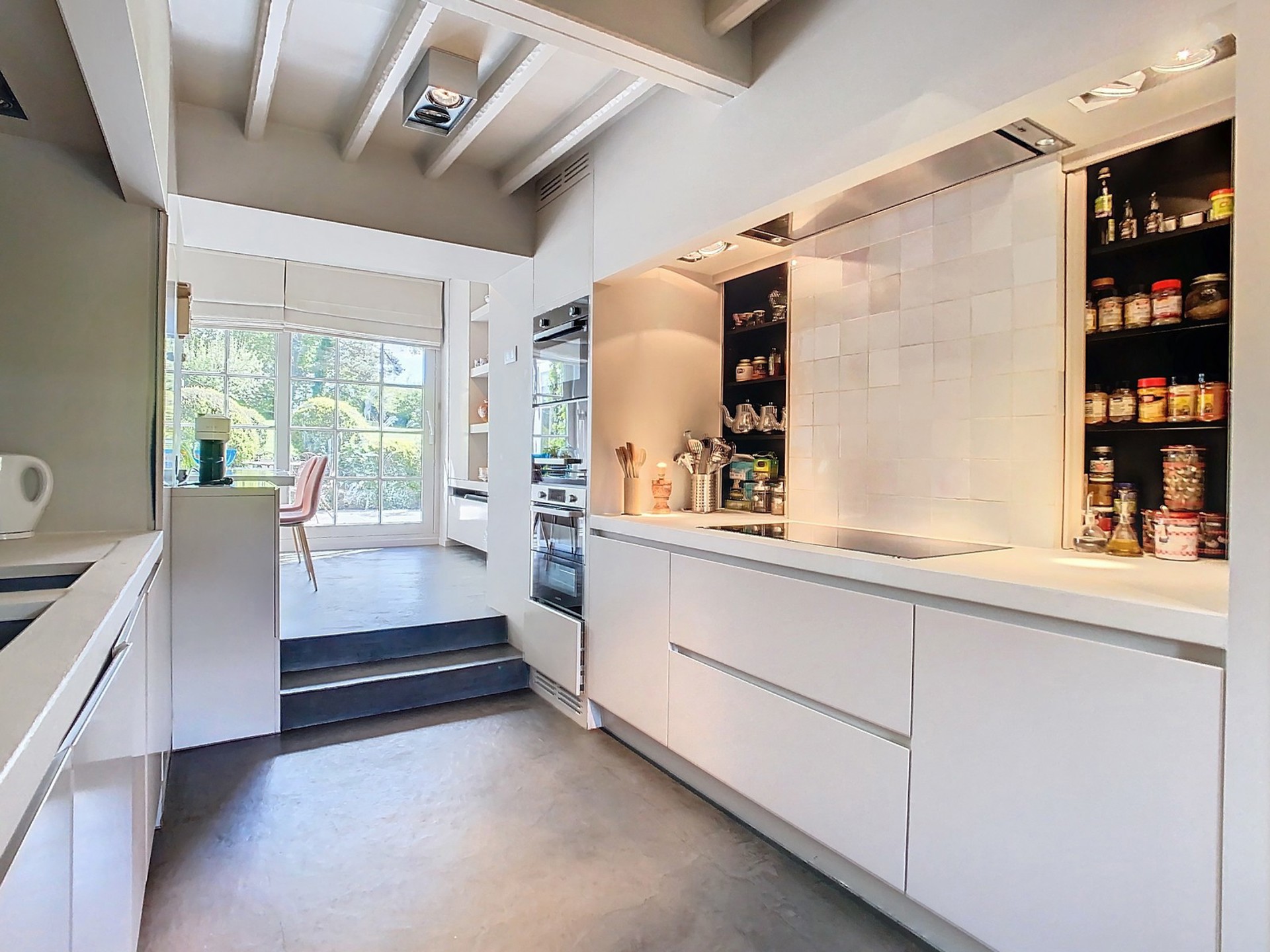 Surface habitable +/- 470 m². Charges pour l’entretien du jardin à prévoir: 275 €/mois.