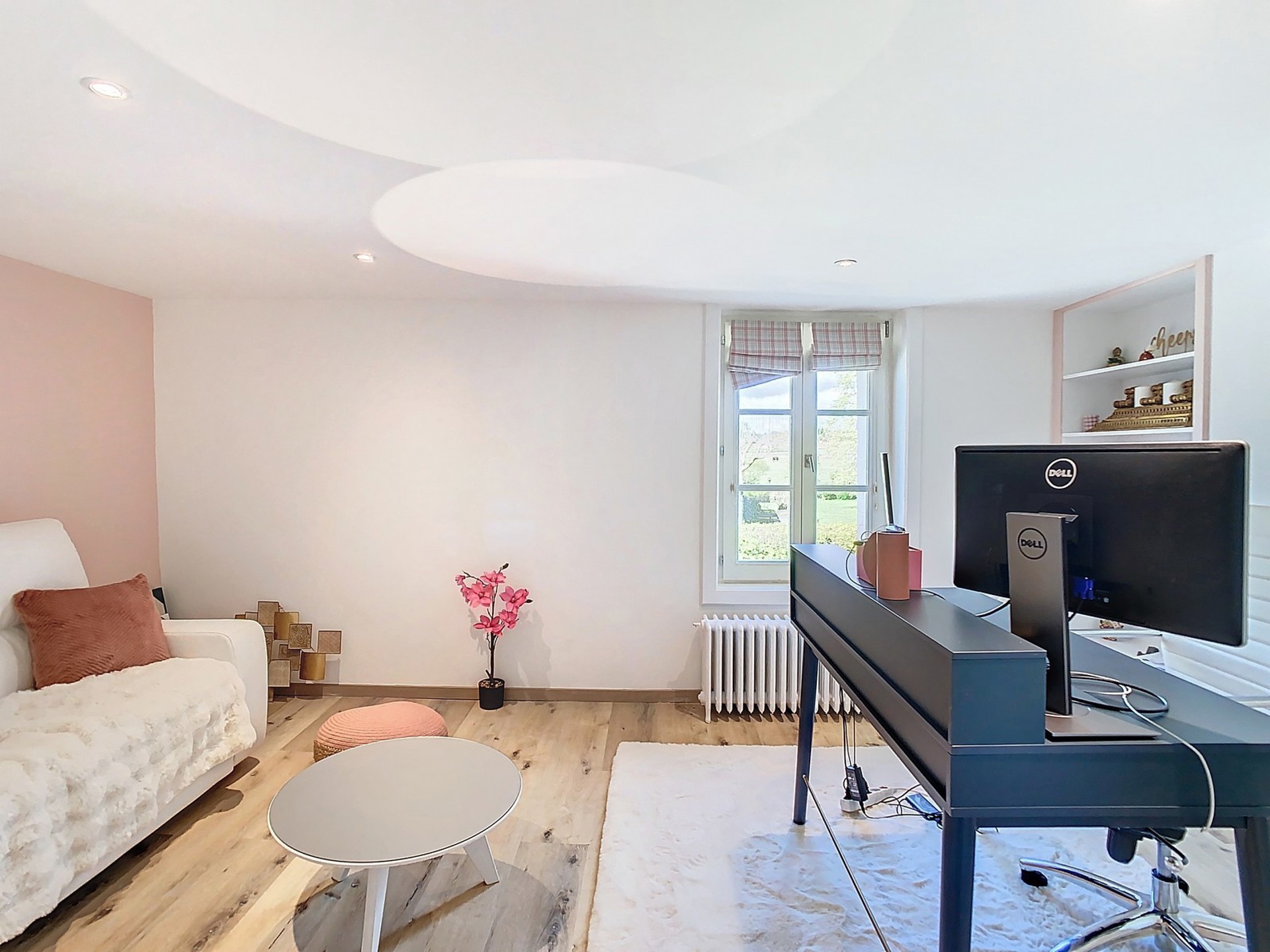 Au sous-sol, un espace aménagé (+/- 100 m²) pouvant servir pour une profession libérale