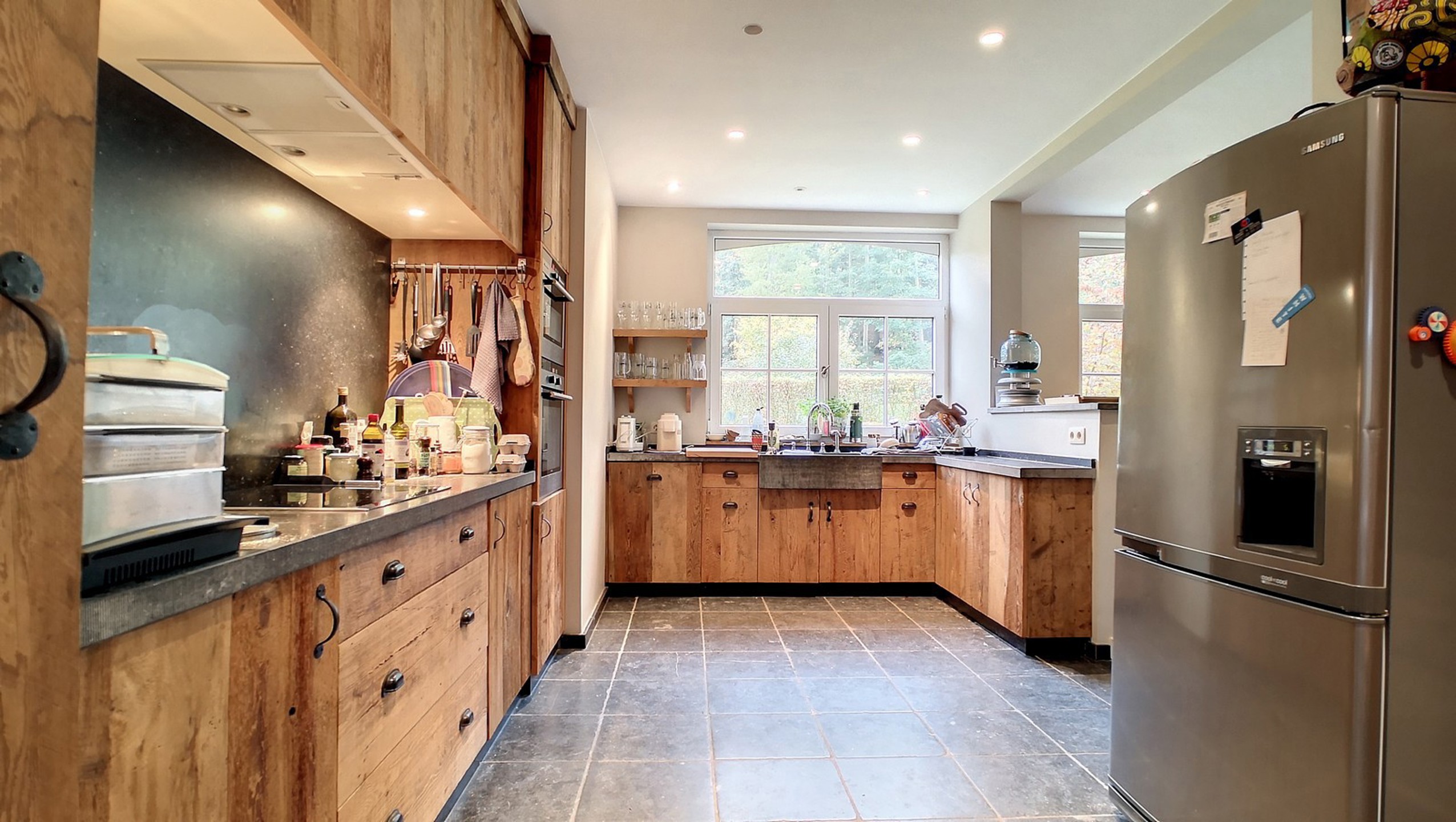Cuisine super équipée de 20 m² avec coin à déjeuner (four, taque vitrocéramique, frigo US, …).