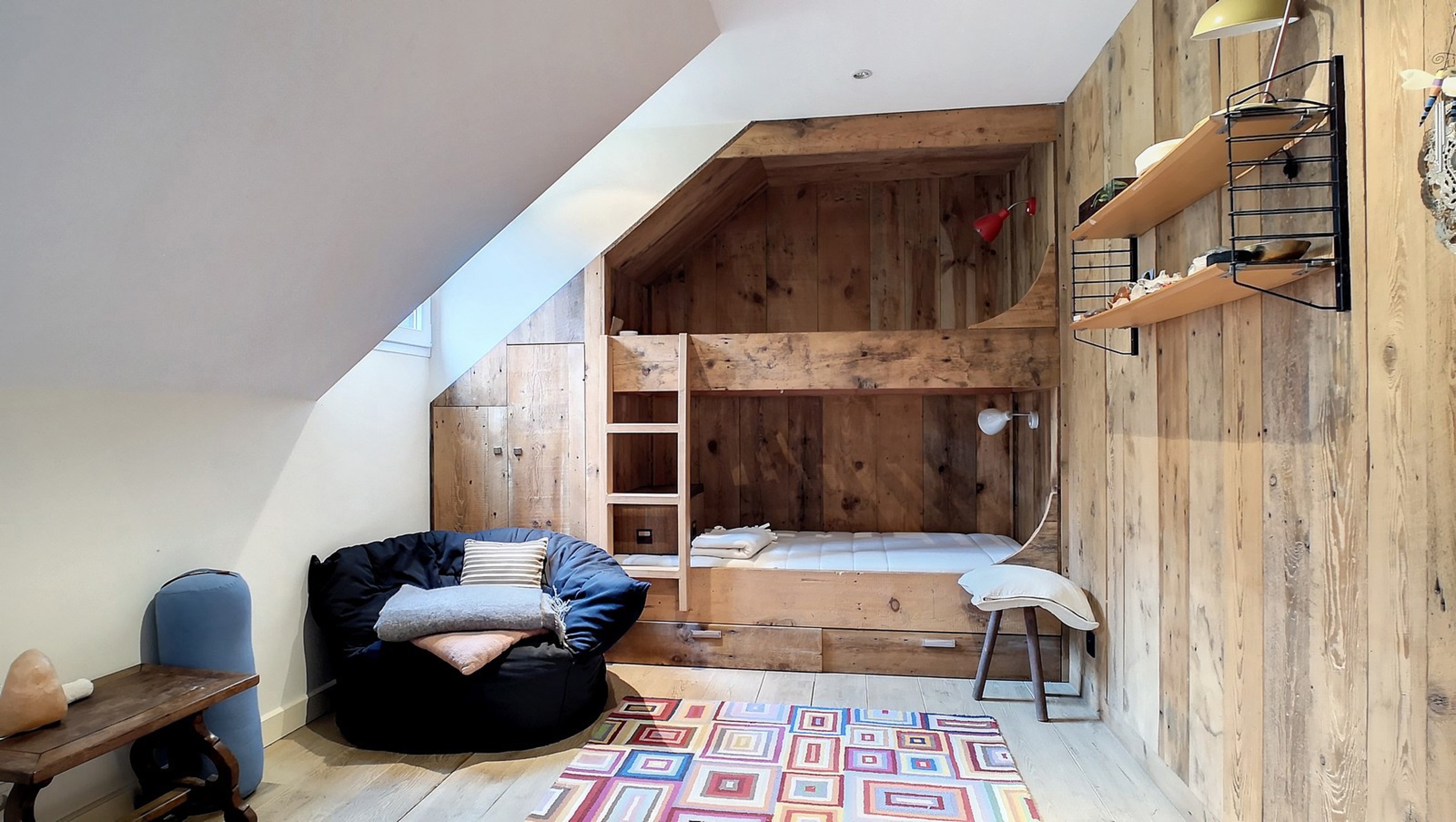 Chambre 4 de 17 m² pourvue de 2 lits superposés encastrés et de placards.
