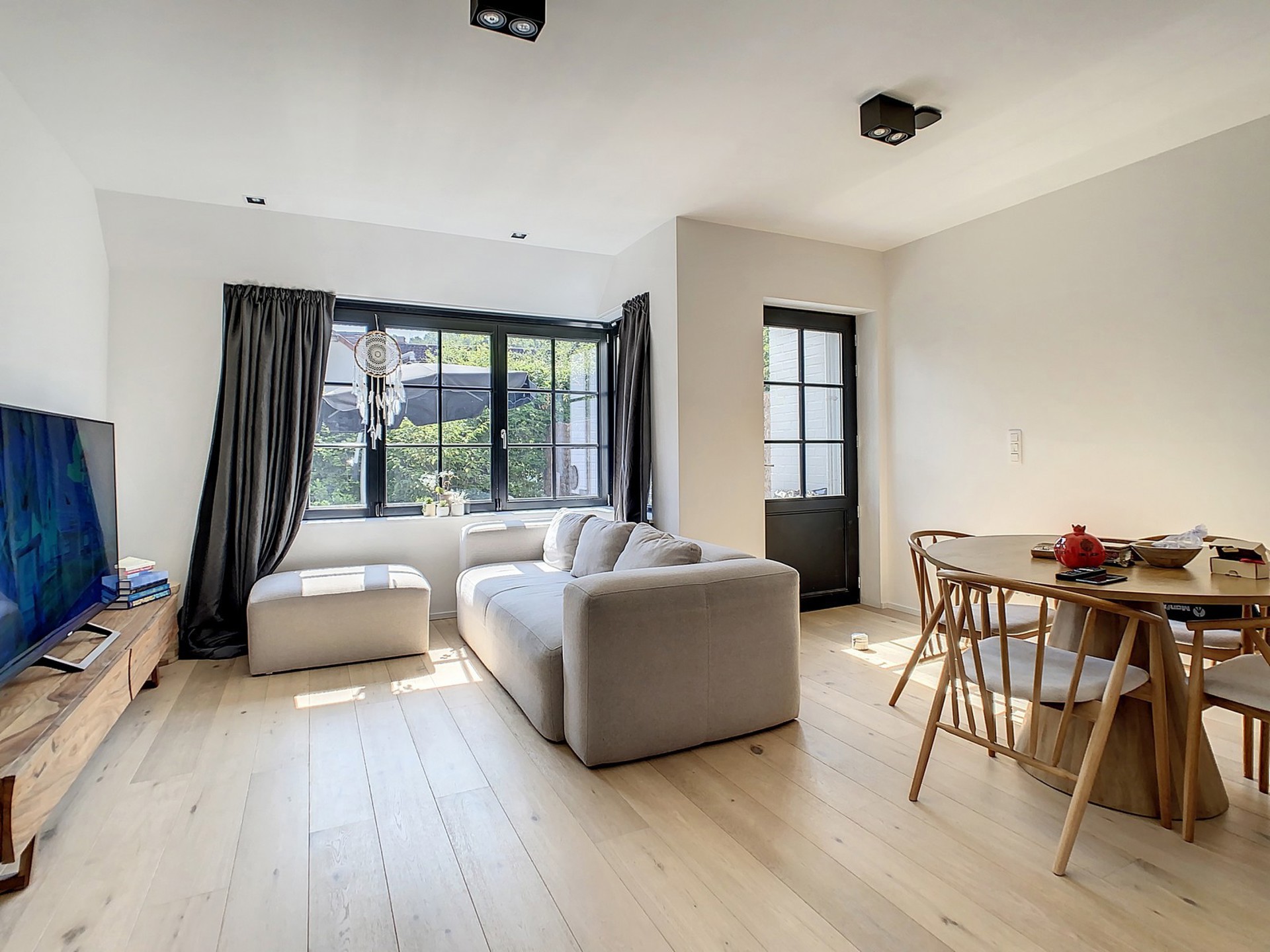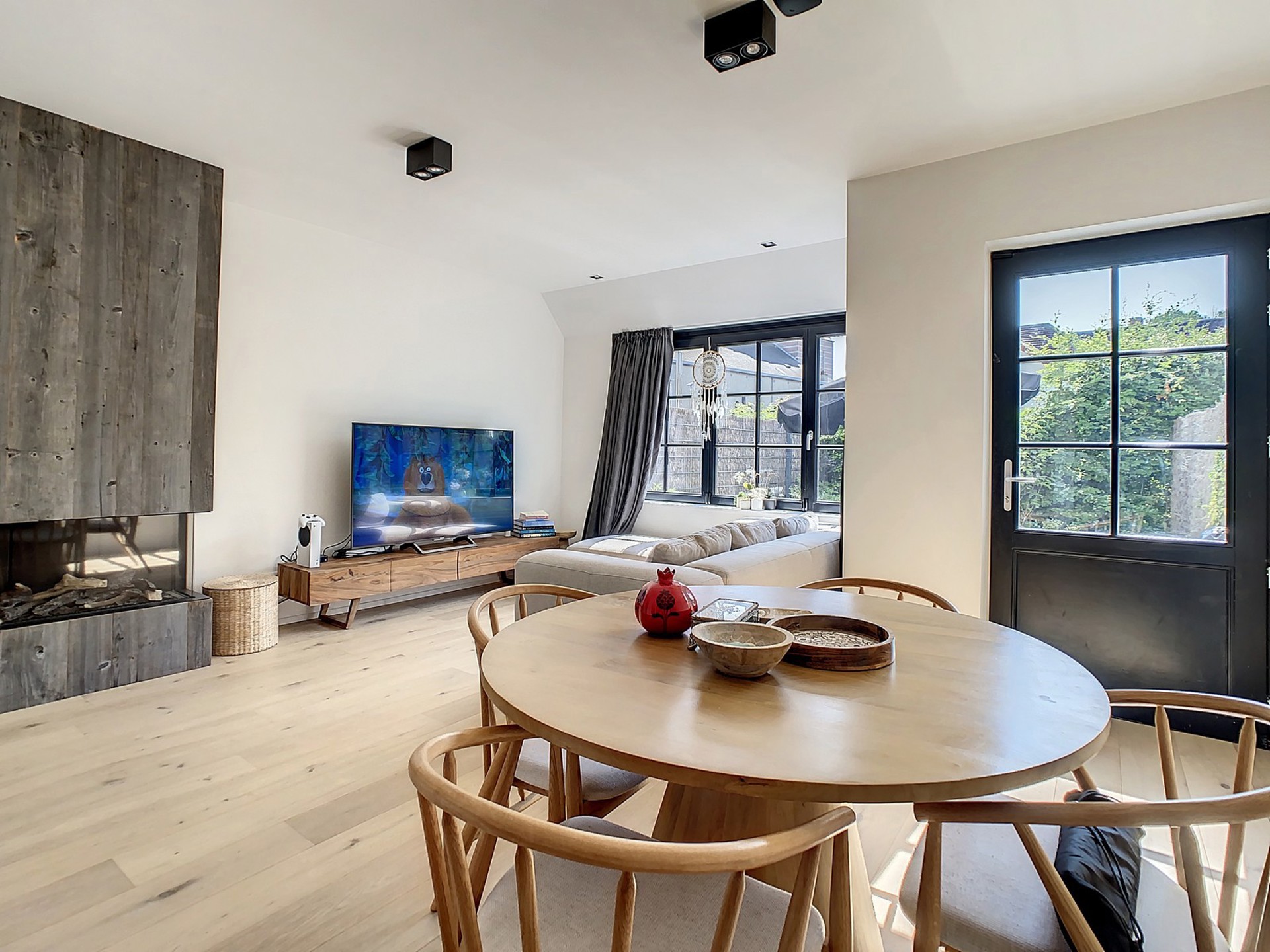 – Séjour lumineux (plancher) avec cheminée au gaz et accès au jardin clôturé et privatisé.