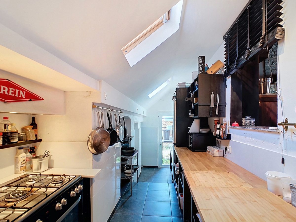 Cuisine professionnelle de 11 m² avec accès vers l’extérieur.