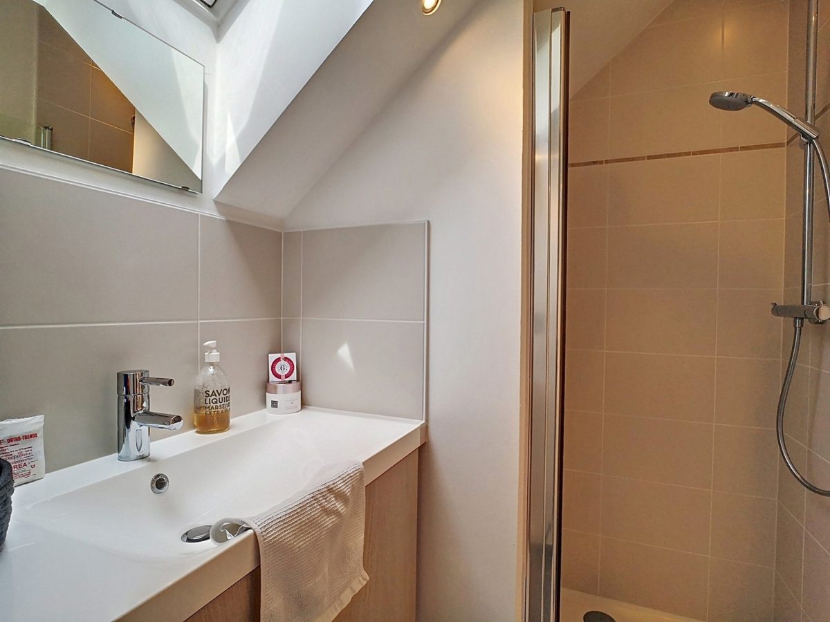 Appartement parental de 23 m² comprenant la chambre 1 de 16 m², un dressing et une salle de douches (meuble lavabo, douche à l’italienne).