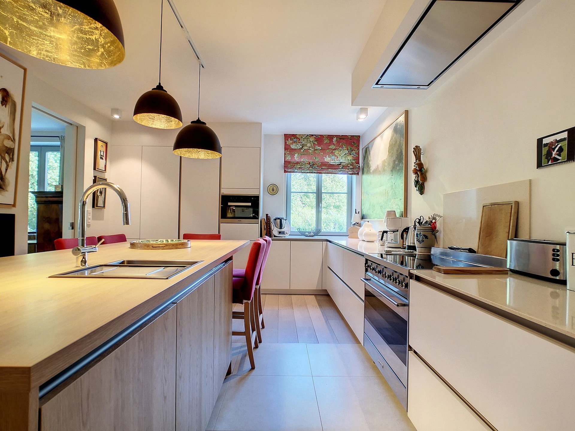 Cuisine super équipée de 26 m² avec ilot central / coin à déjeuner (portes coulissantes vers le salon).