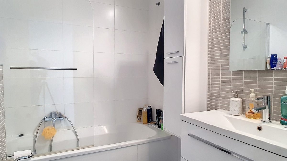 Salle de bains récente (6 ans) (meuble lavabo, baignoire/douche et toilette).