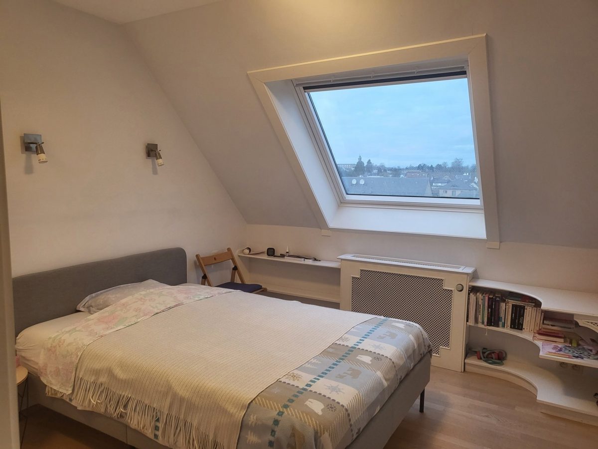 Cuisine récente (+/- 6 ans) entièrement équipée de 7,5 m² avec accès à une terrasse de 8 m² (four, taque, hotte, frigo, micro-ondes et grill, lave-vaisselle, lave-linge).