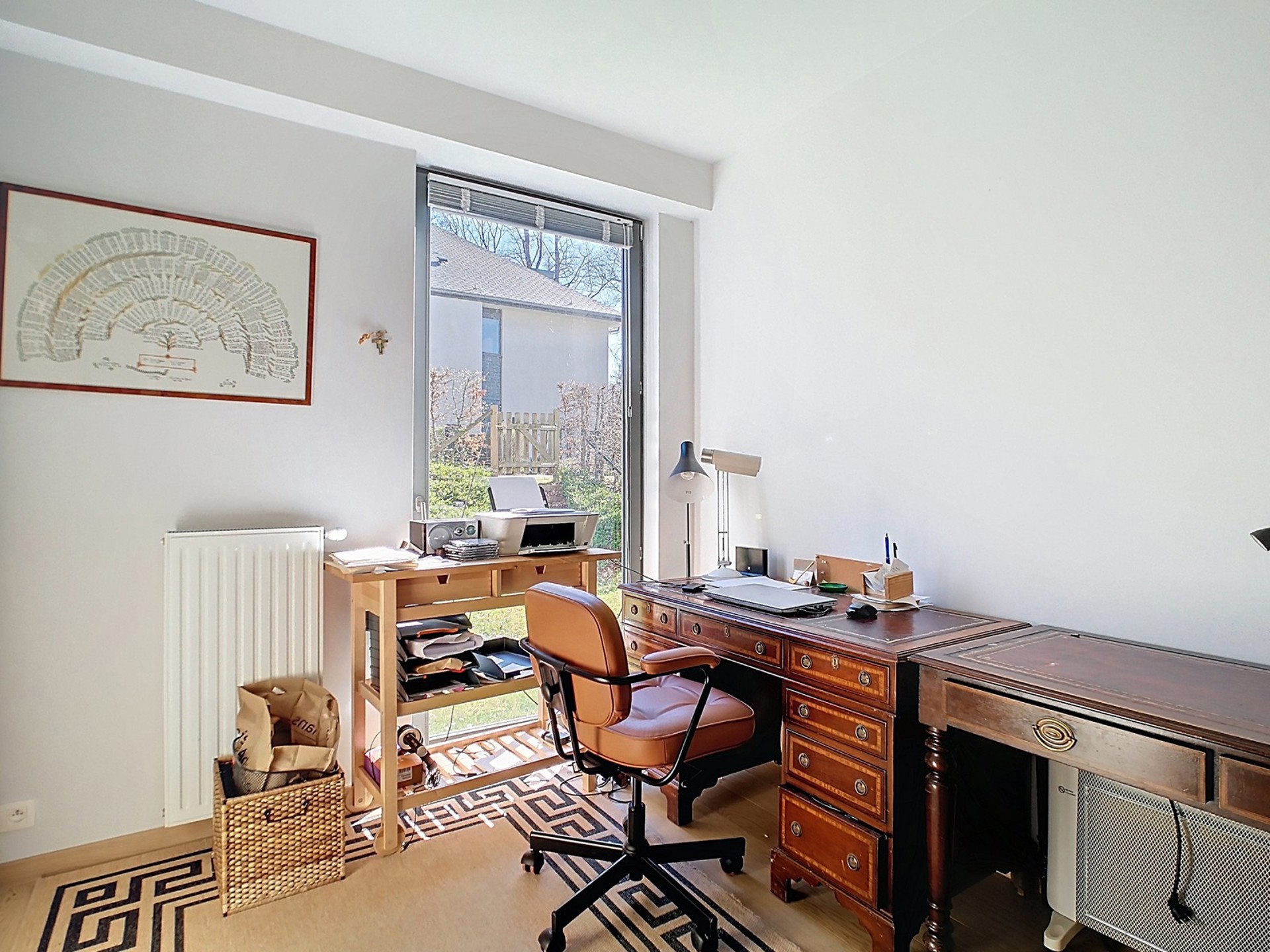 Chambre 2 de 9,77 m² (actuellement utilisée comme bureau), avec accès au jardin.