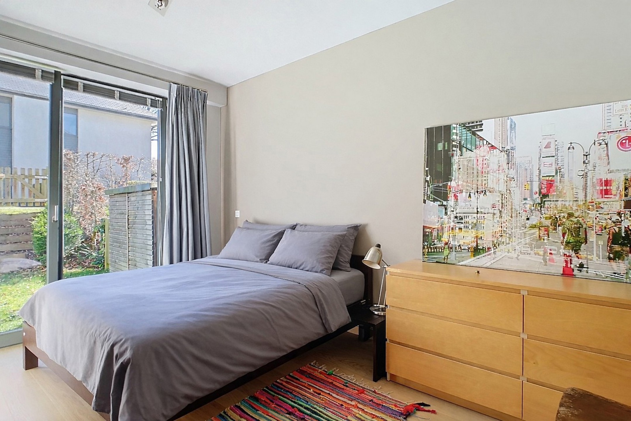 Chambre 1 de 13,5 m² avec accès au jardin.