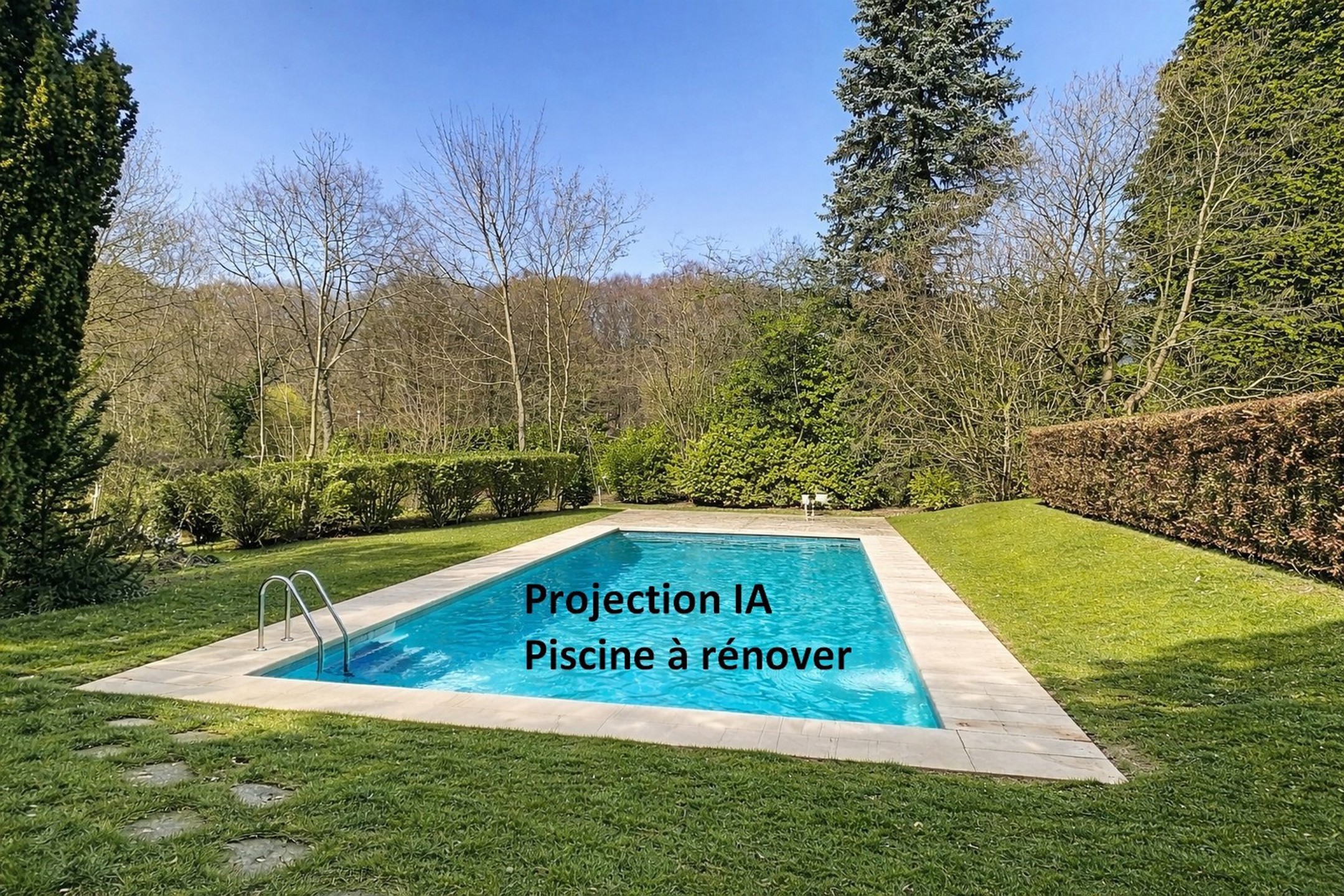 Piscine de 12 x 6 m, profondeur d’environ 2 m (à réhabiliter dans son entièreté).