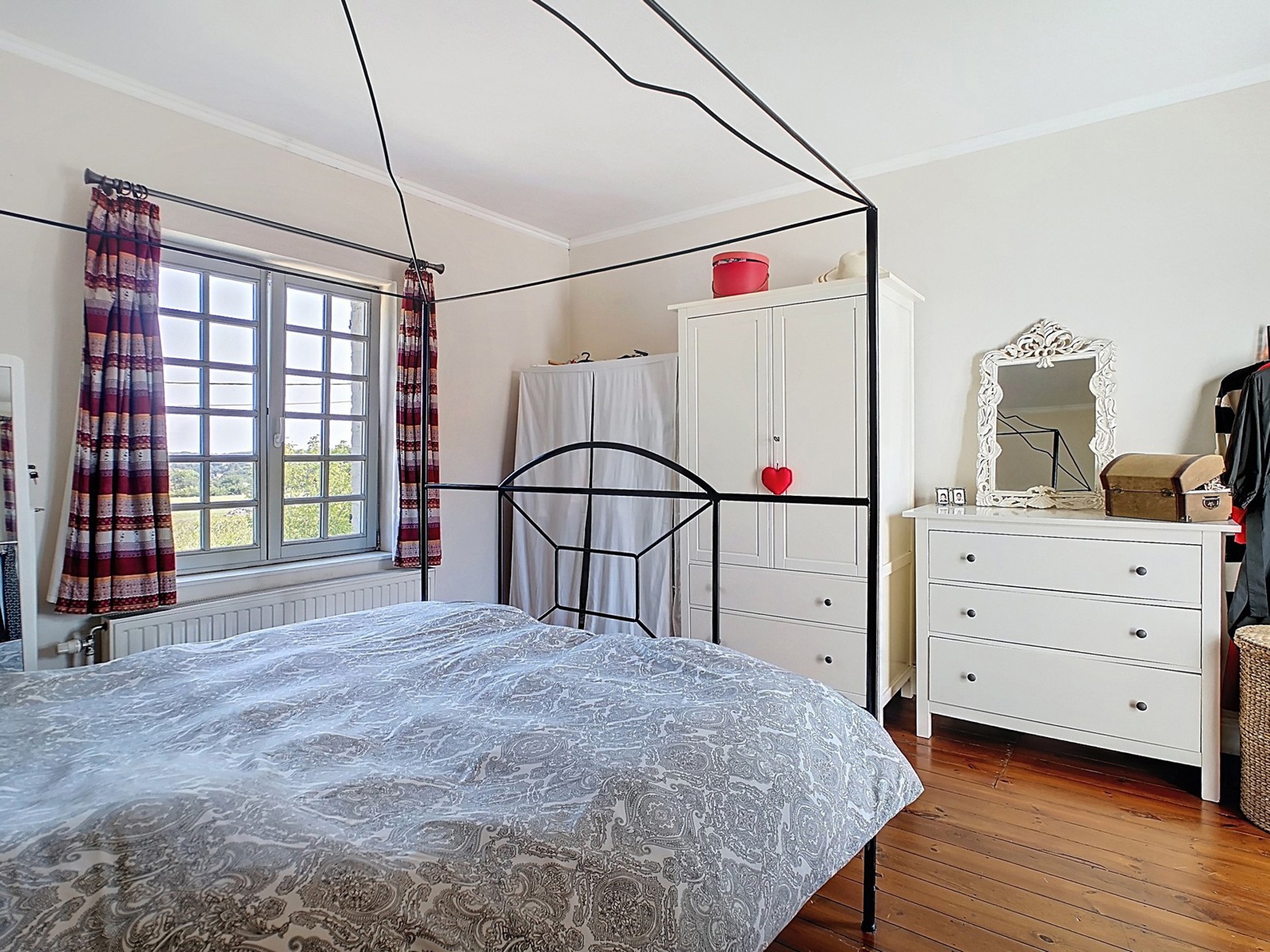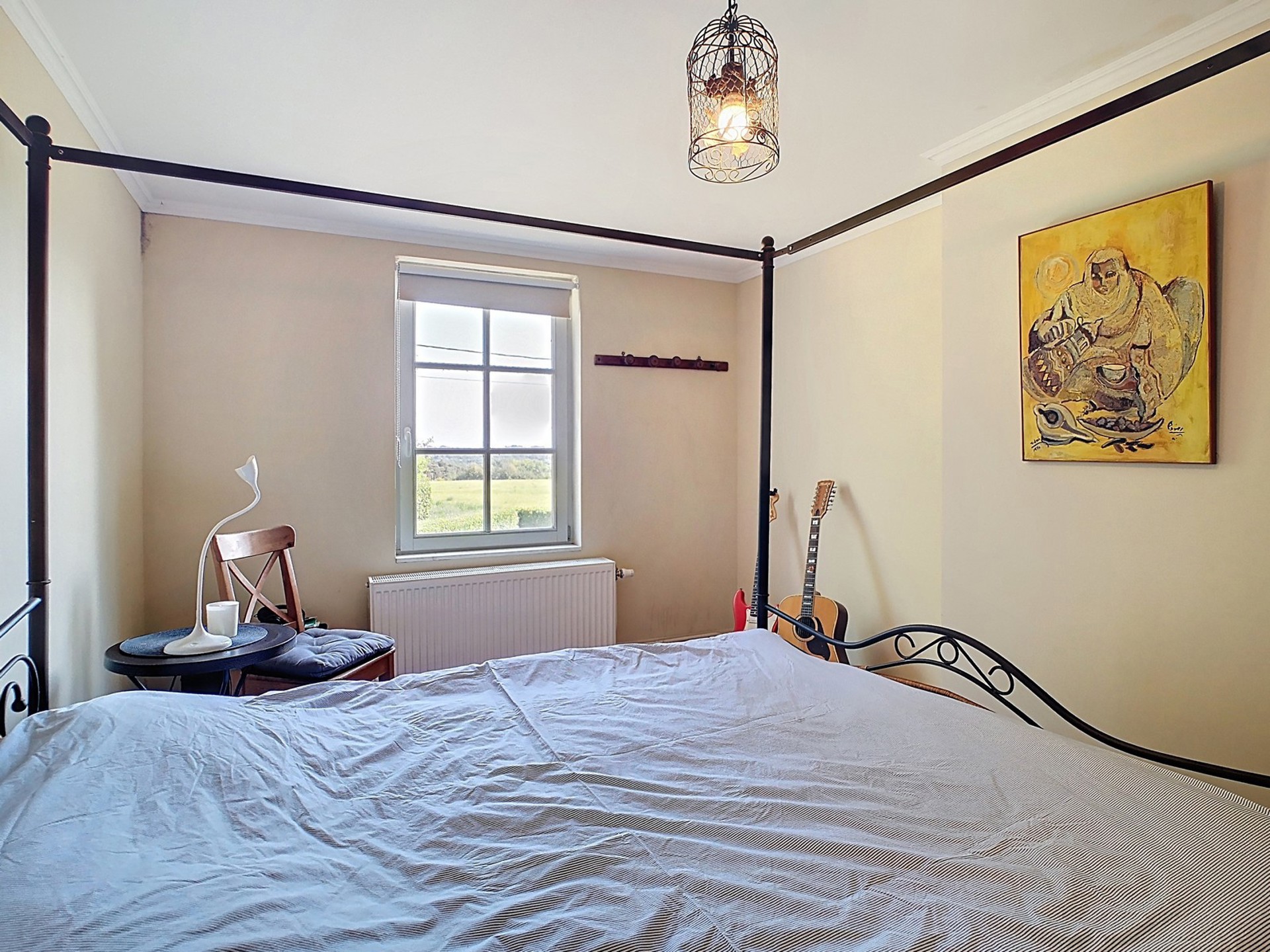 Chambre 4 de 16 m² avec vue sur le jardin (Lambris sur un mur).