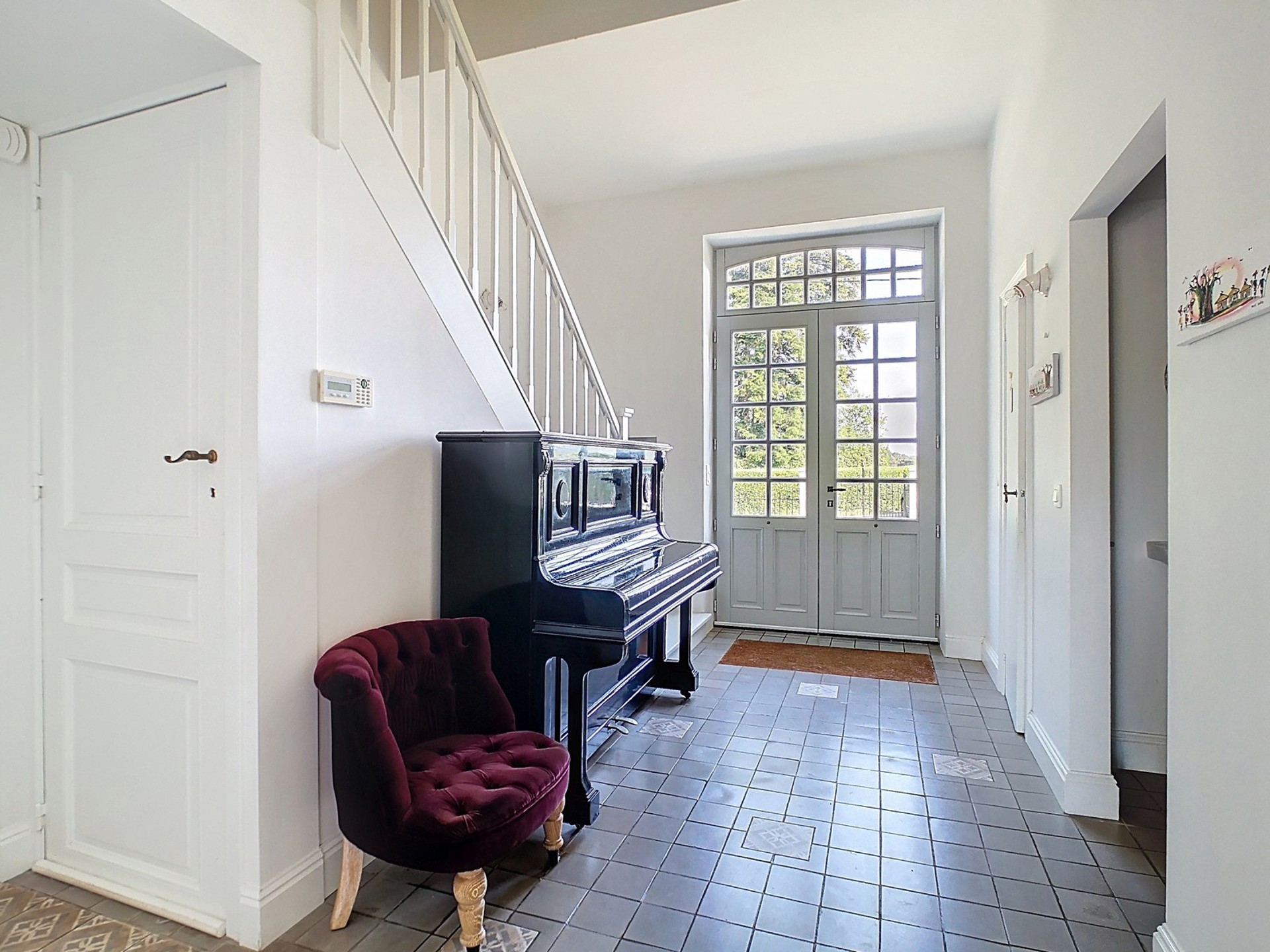 Découvrez le charme des lieux et ses petits détails décoratifs lors d’une visite (portes-fenêtres intérieures biseautées, poignées de la porte d’entrée principale, …).