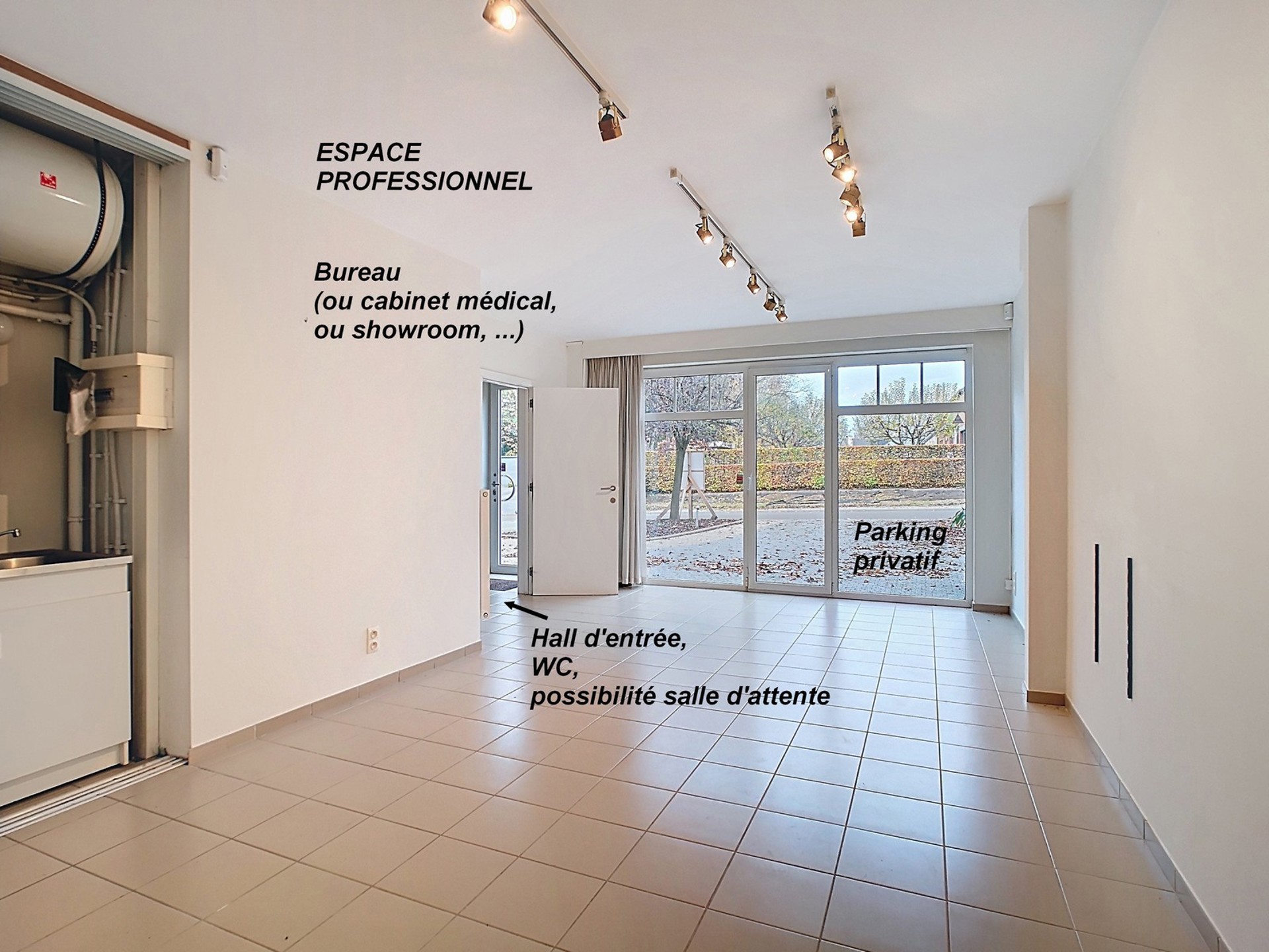 Bureau de 29 m² (cabinet médical ou bureau ou showroom, …) avec nombreux spots / prises – Kitchenette.