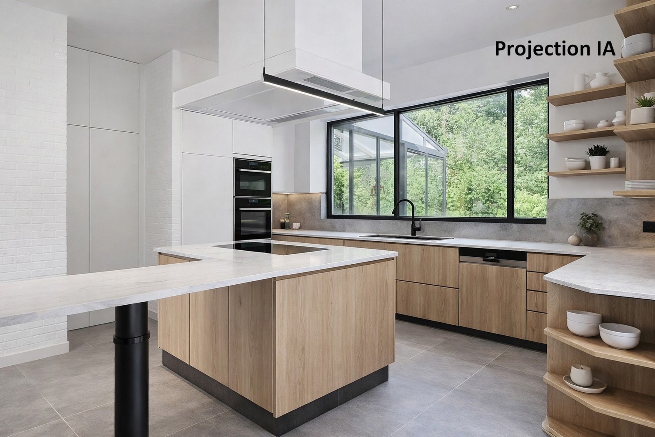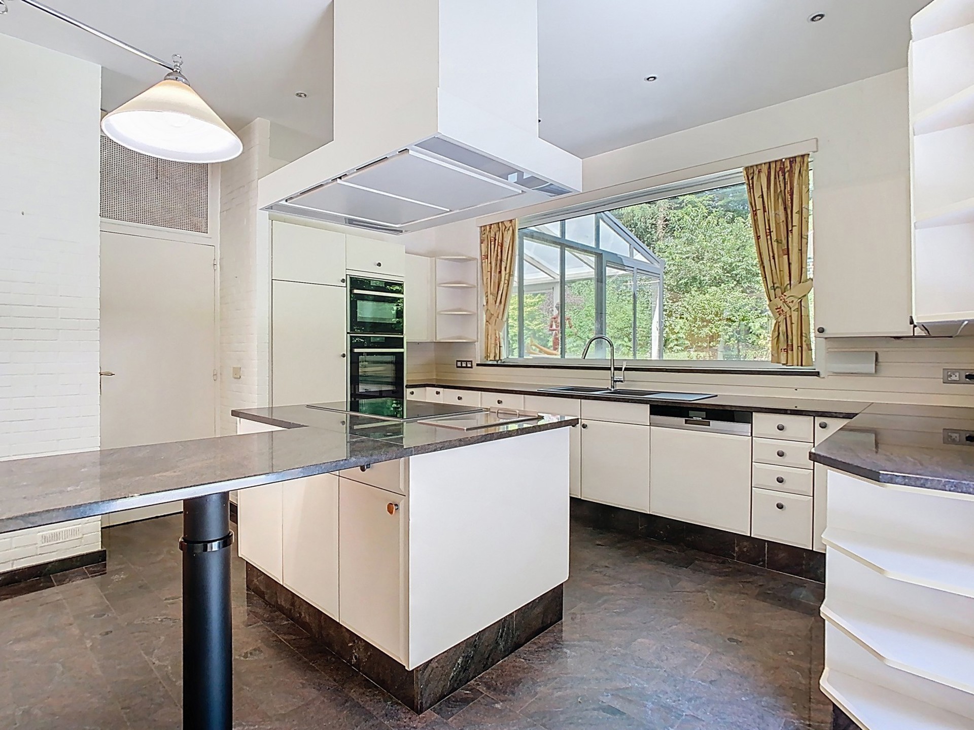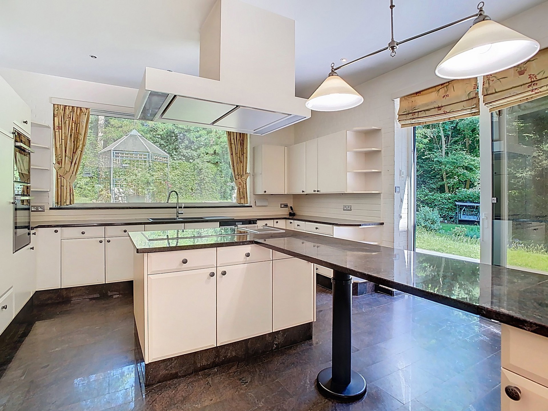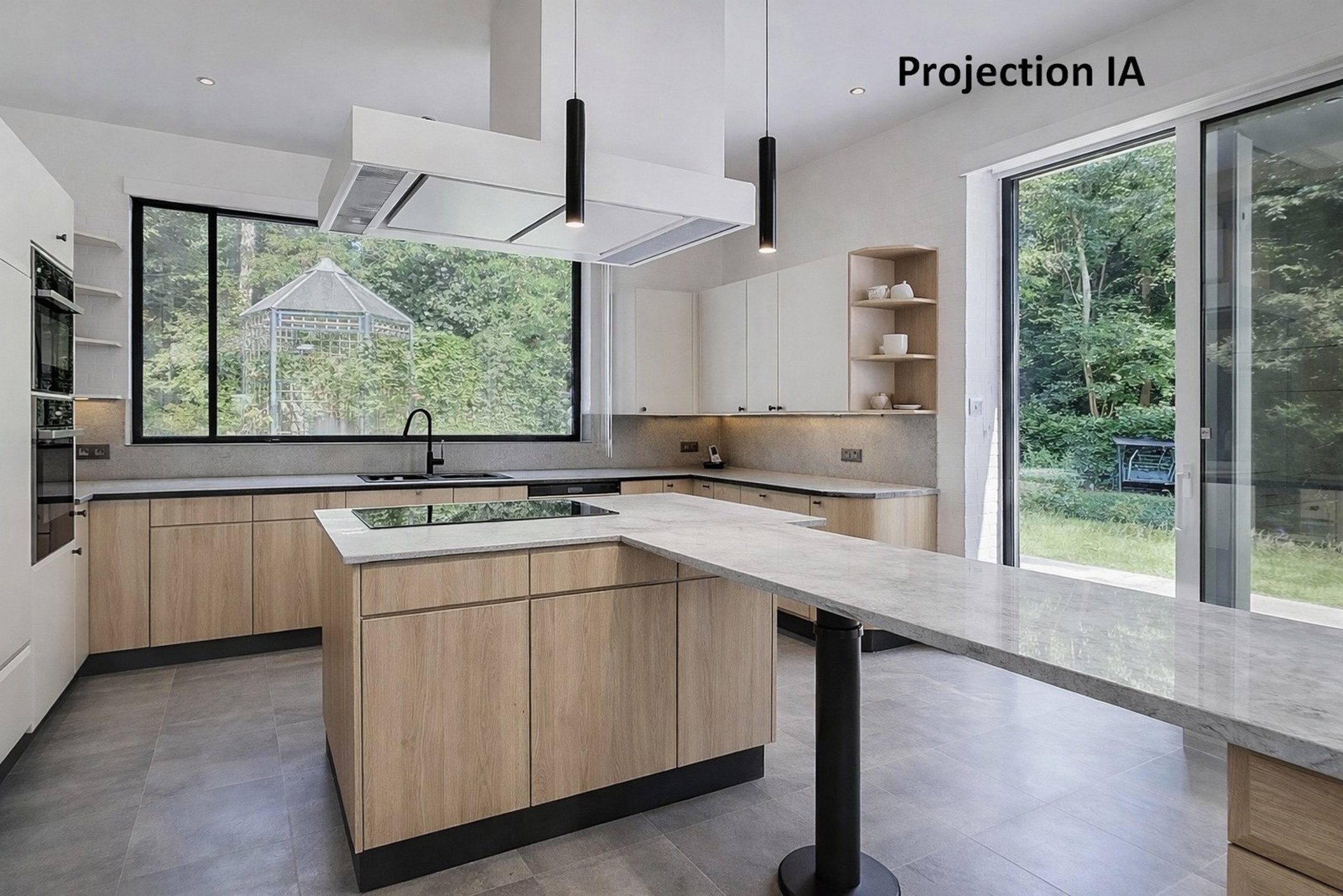 Cuisine super équipée de 19 m² agrémentée d’un convivial coin à déjeuner ainsi qu’un îlot central, donnant accès à la terrasse et au jardin