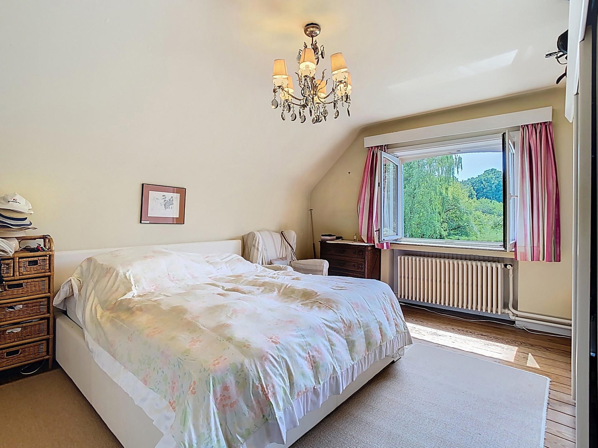 Chambre 3 de 19 m² bénéficiant d’une jolie vue sur le jardin.