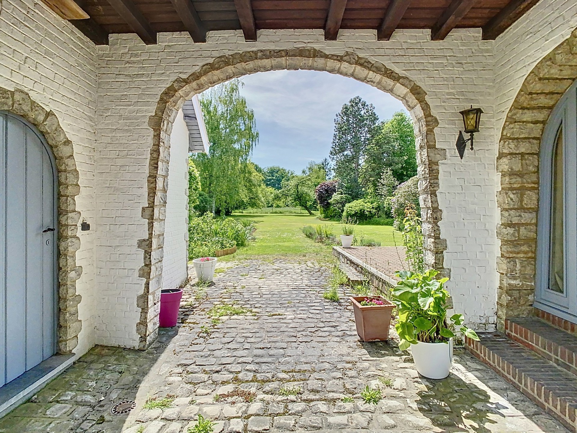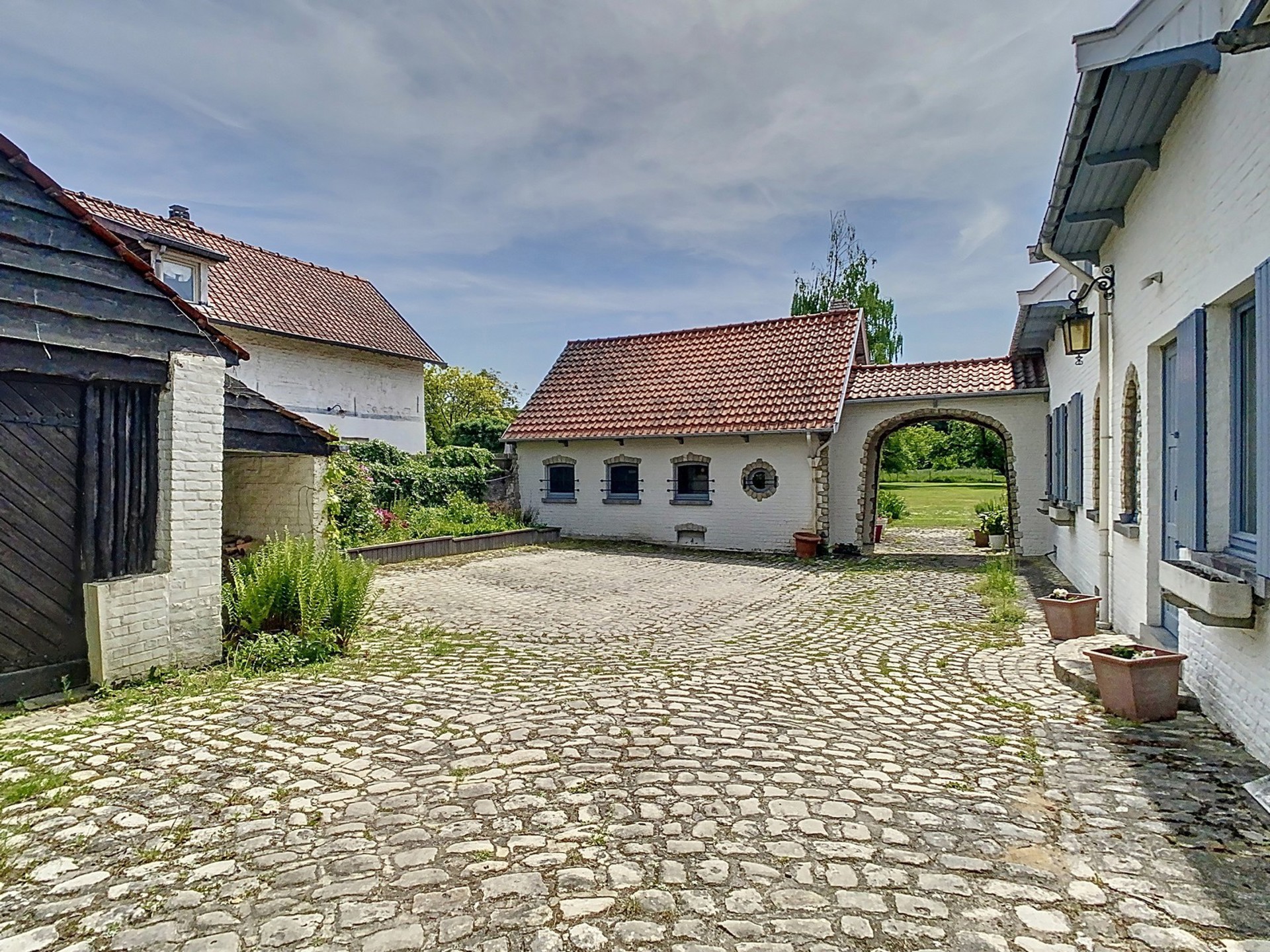 Cour intérieure pavée à l’ancienne.