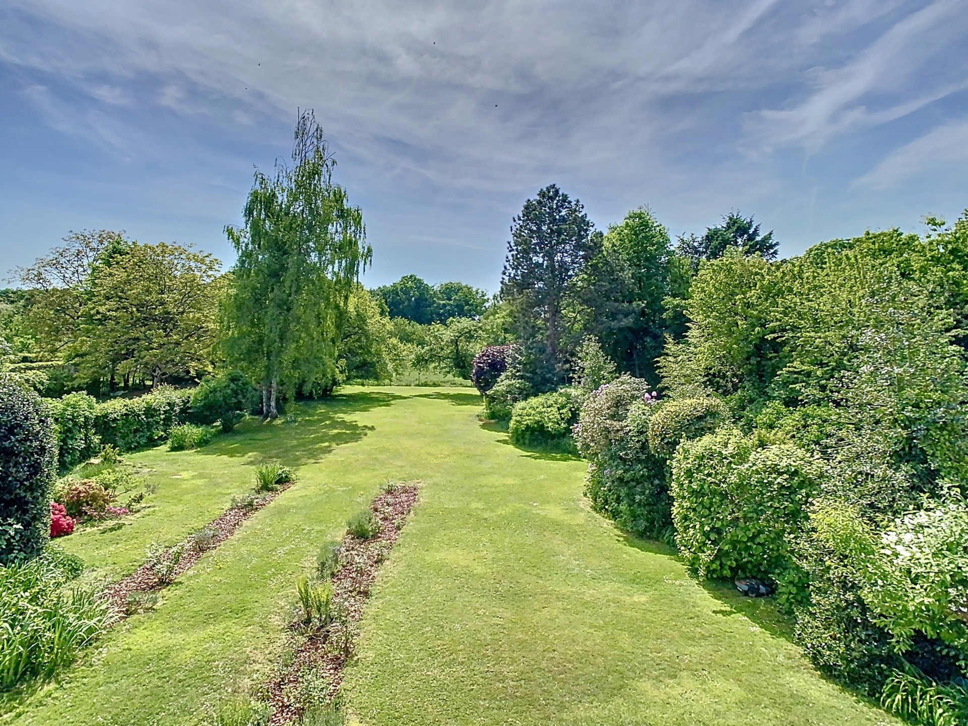 Chambre 4 de 13,5 m² bénéficiant d’une jolie vue sur le jardin.