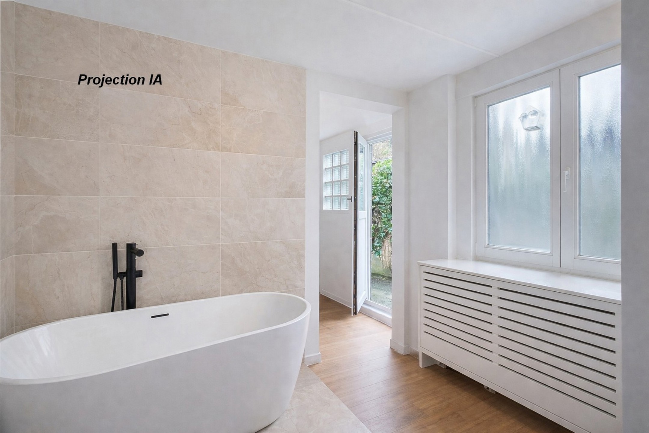 Double vitrage Bois (côté rue) / PVC (côté jardin).