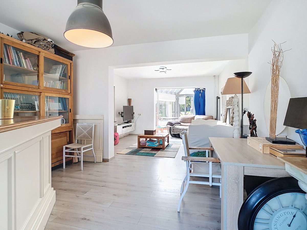 Salon et salle à manger de 58 m² avec accès à la terrasse.