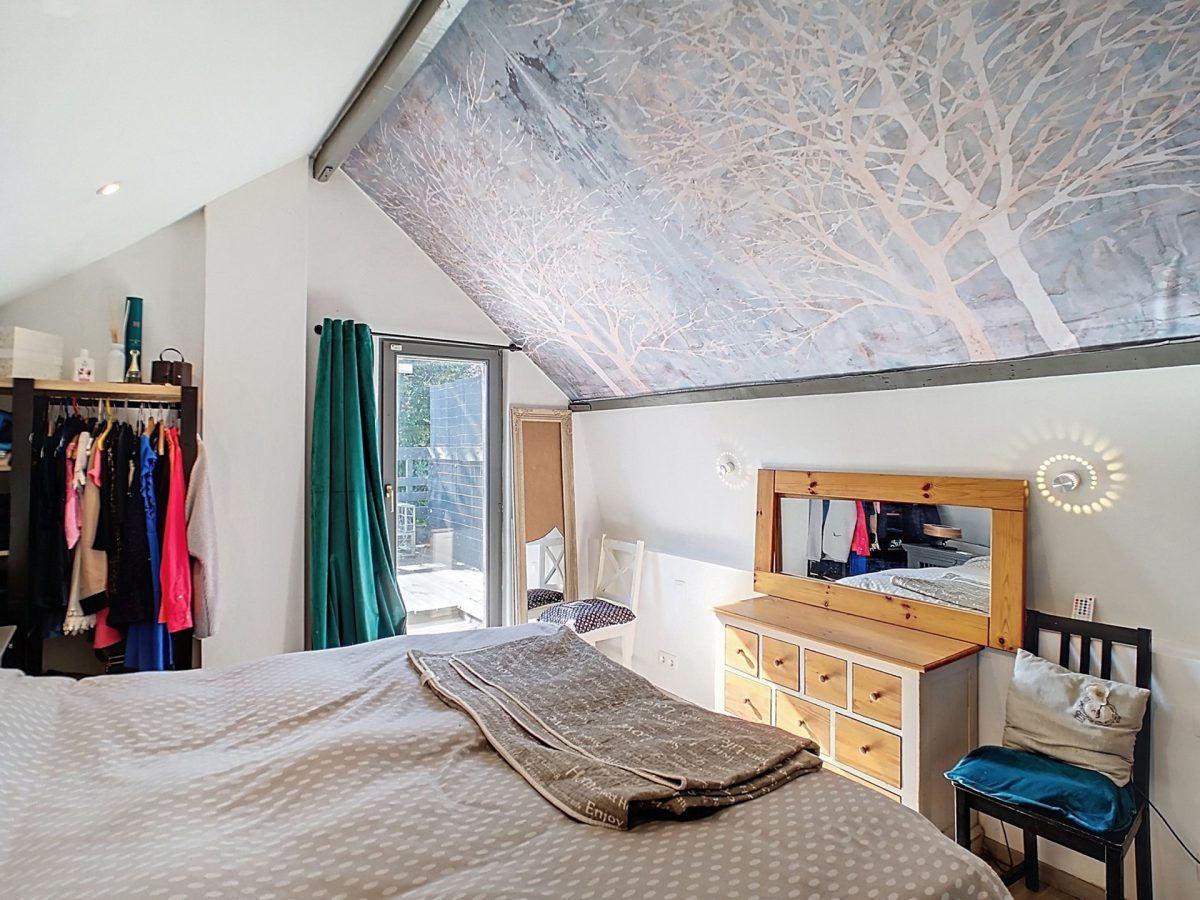 Chambre 1 de 15,4 m² avec accès à la terrasse de l’étage.
