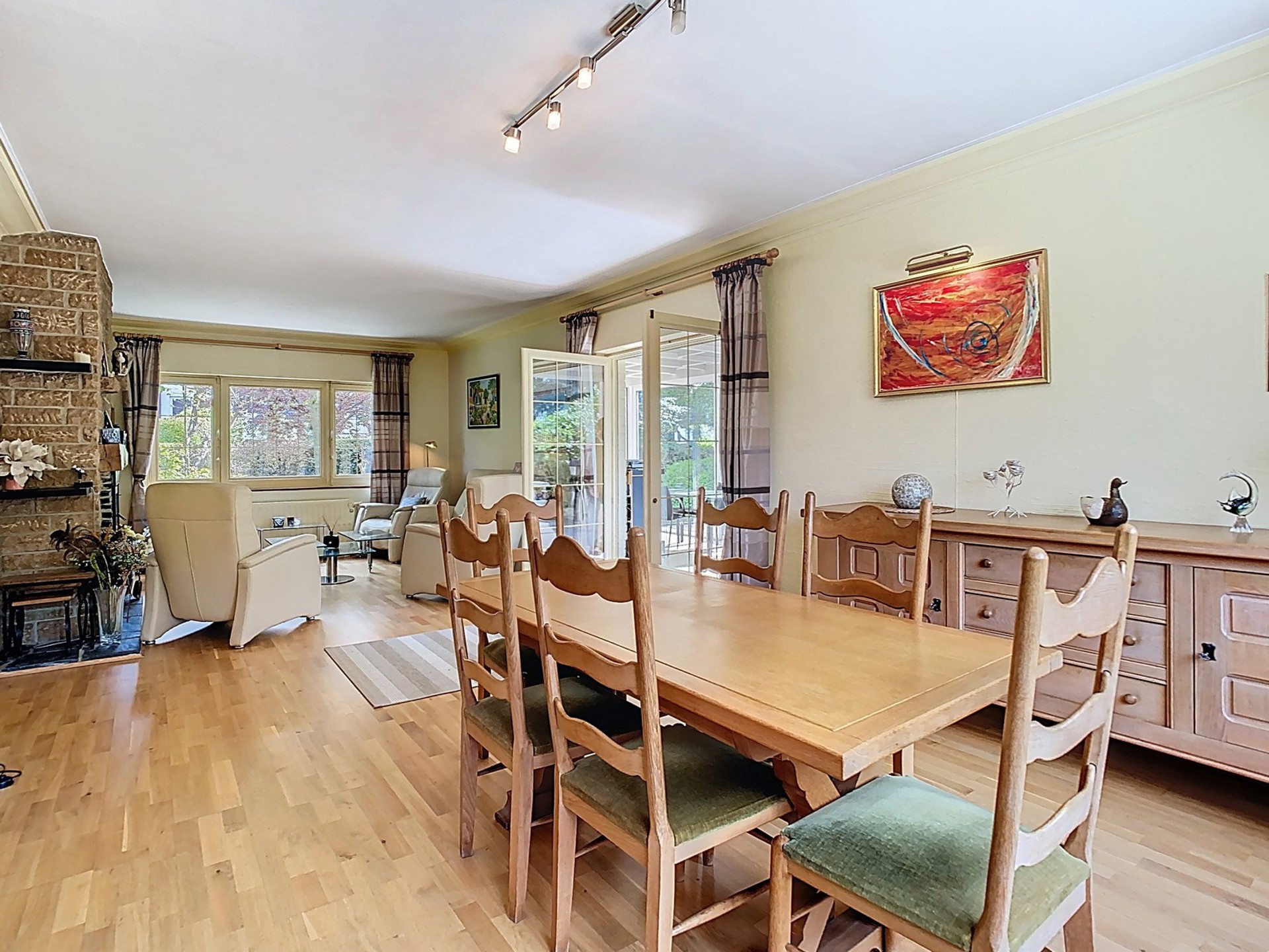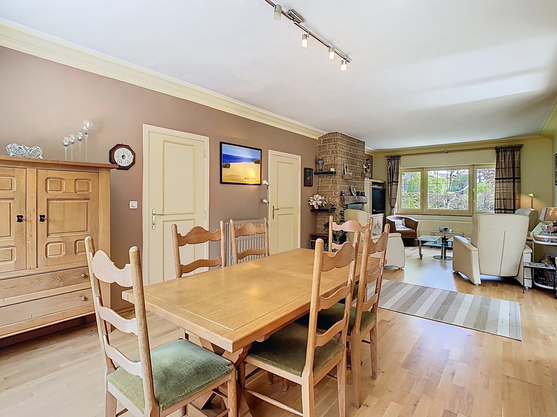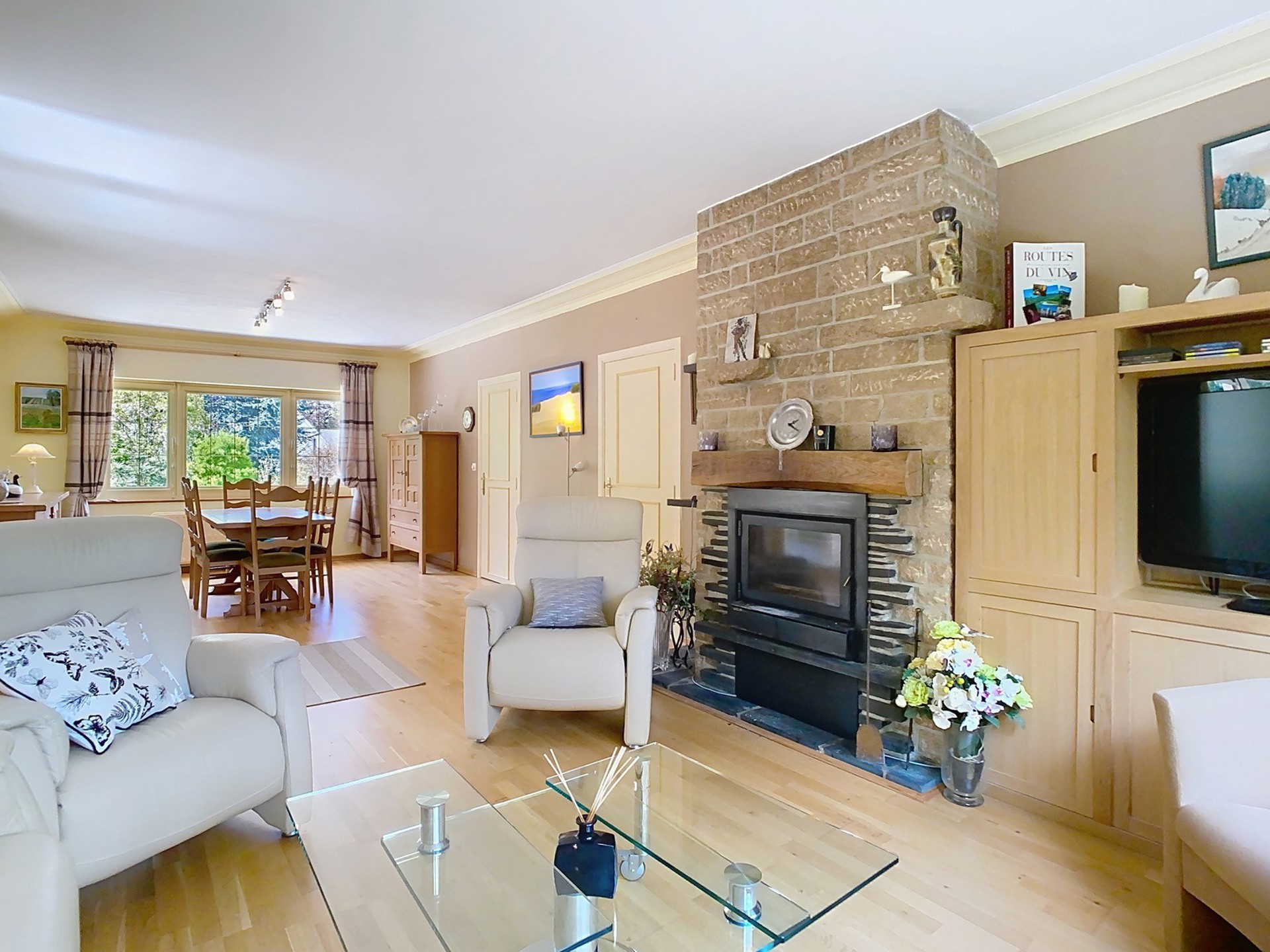 Séjour de +/- 38 m² avec feu ouvert à cassette.
