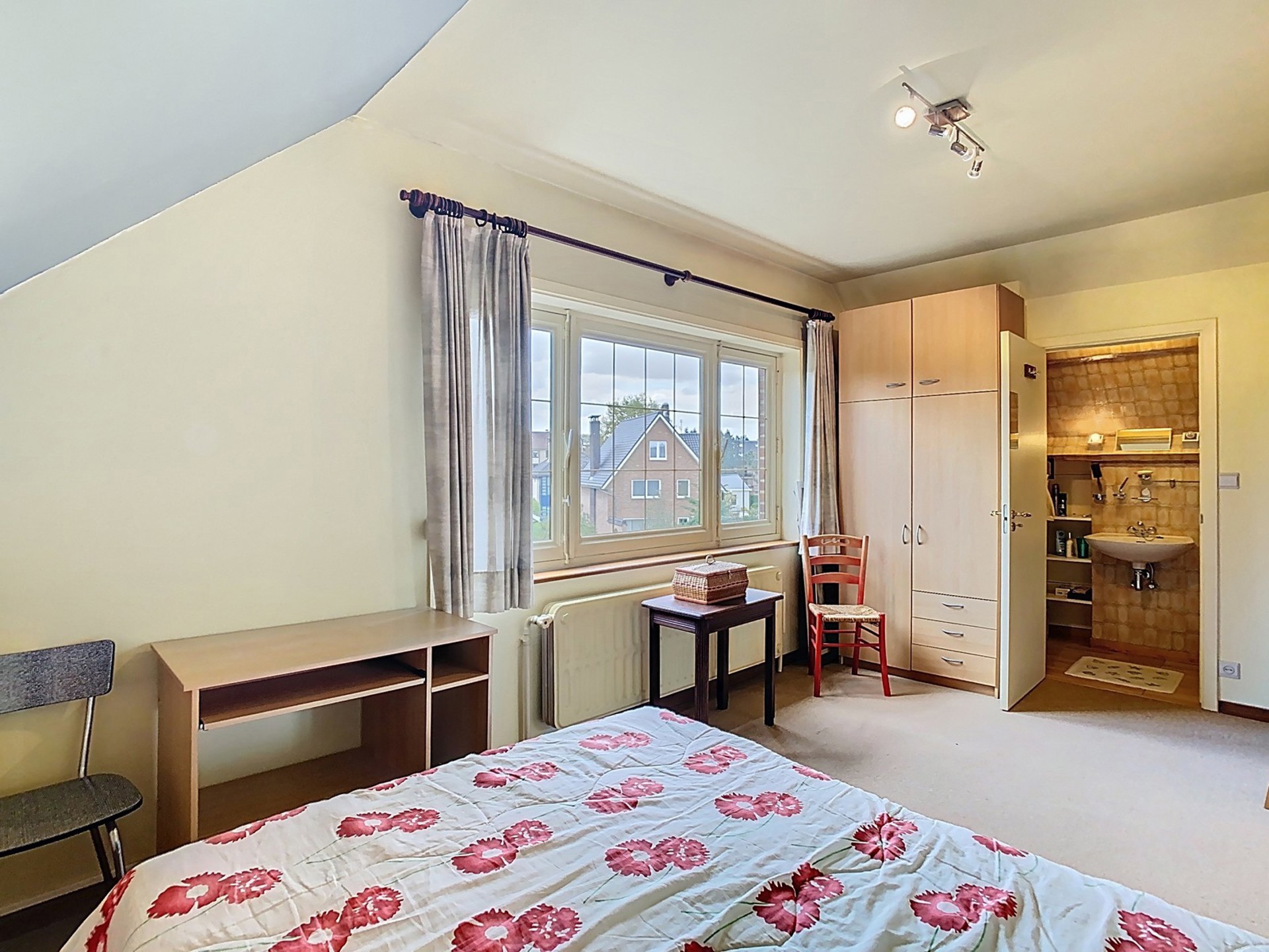Chambre 2 de +/- 16 m² avec salle de douches attenante de +/- 3 m² (lavabo, douche et toilette).