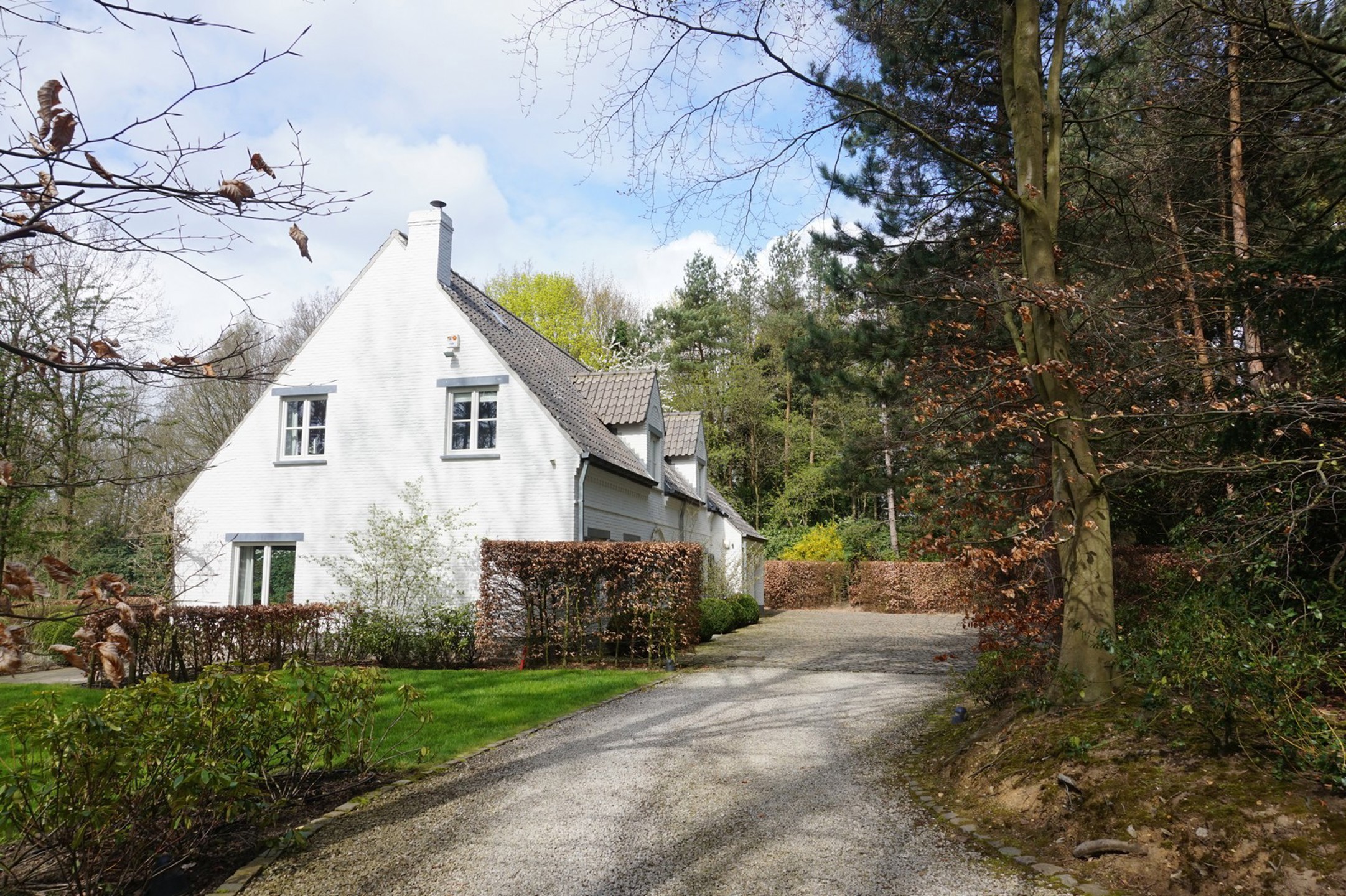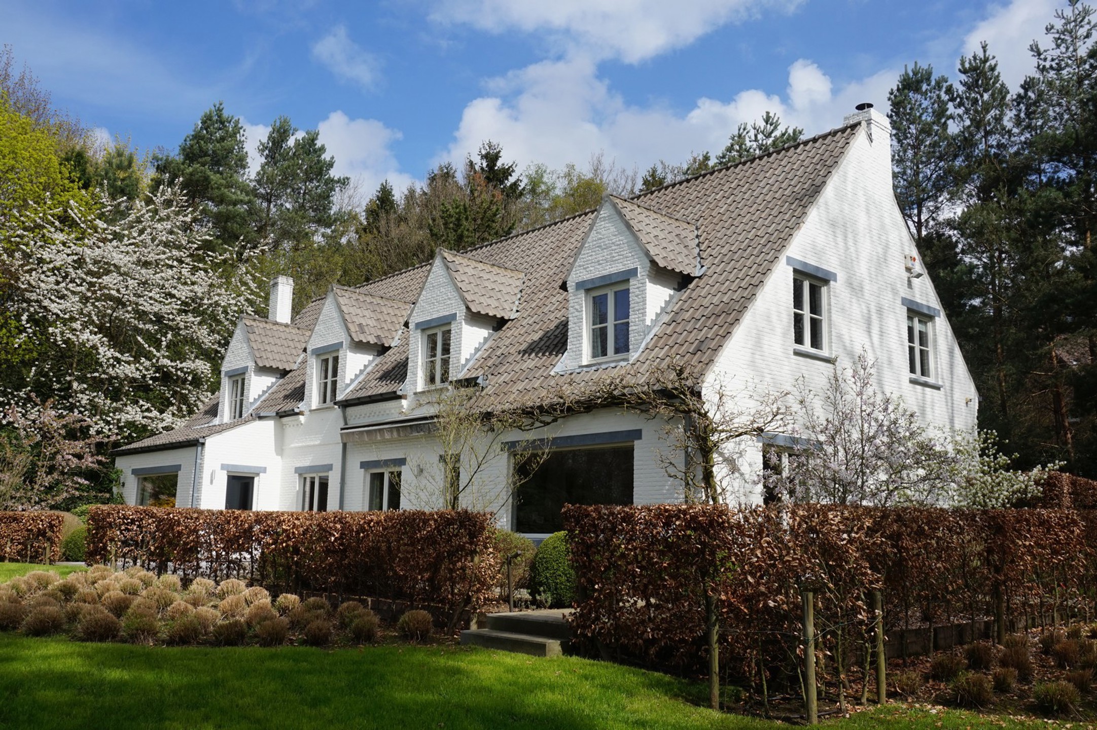Surface habitable +/- 300 m² + sous-sol +/- 15 m² + garage 2 voitures +/- 32 m² + parking généreux.