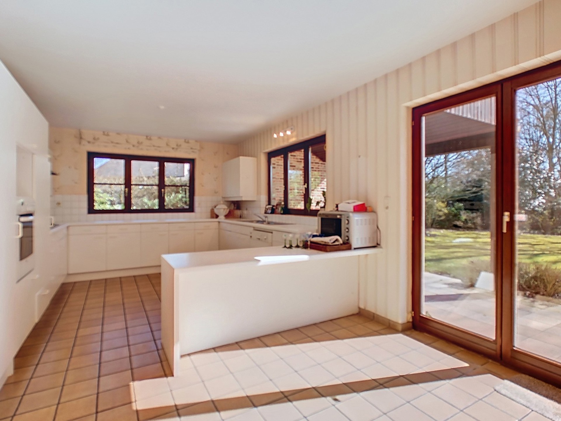 Grande cuisine de 22 m² (d’origine), avec coin à déjeuner et accès au jardin.