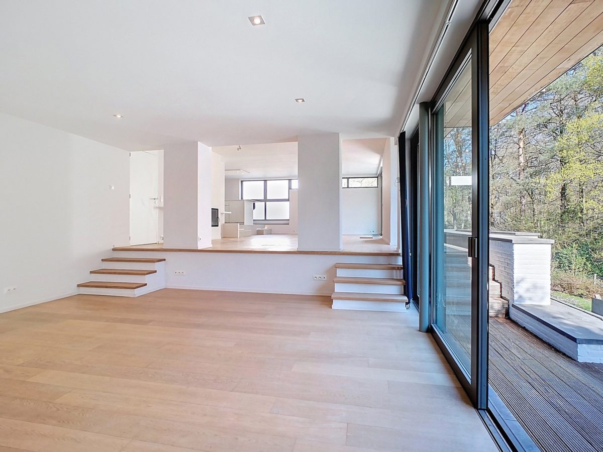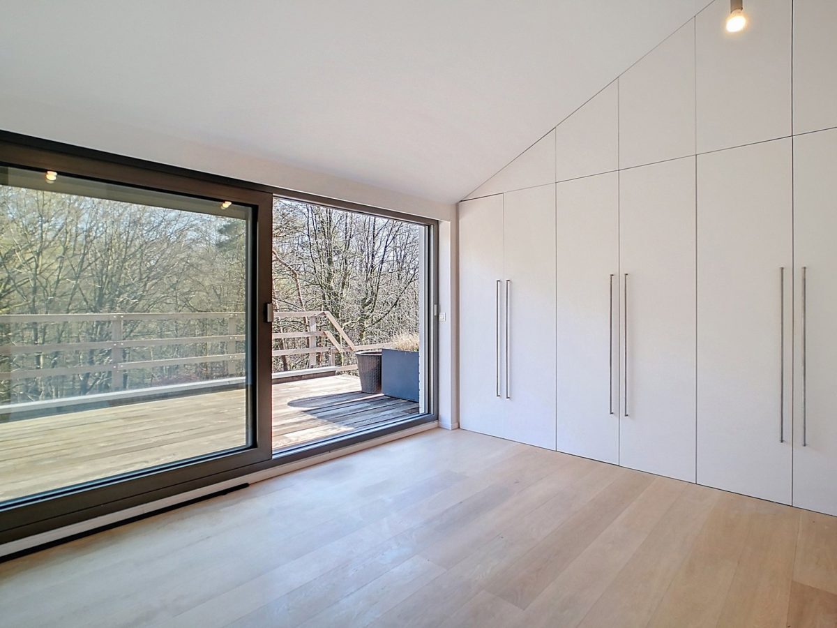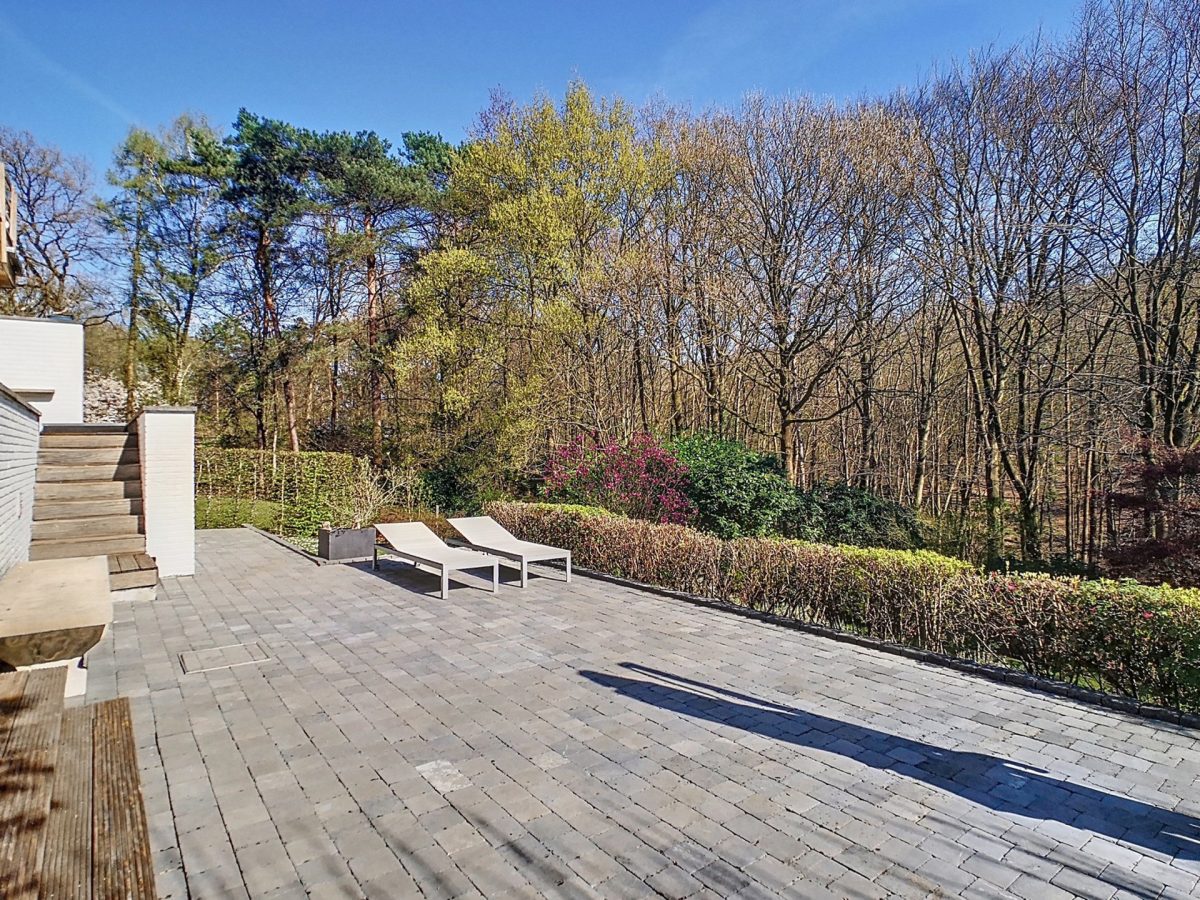 La longue et belle TERRASSE de +/- 40 m² est accessible par les 3 chambres offrant ainsi une superbe vue sur la nature environnante.
