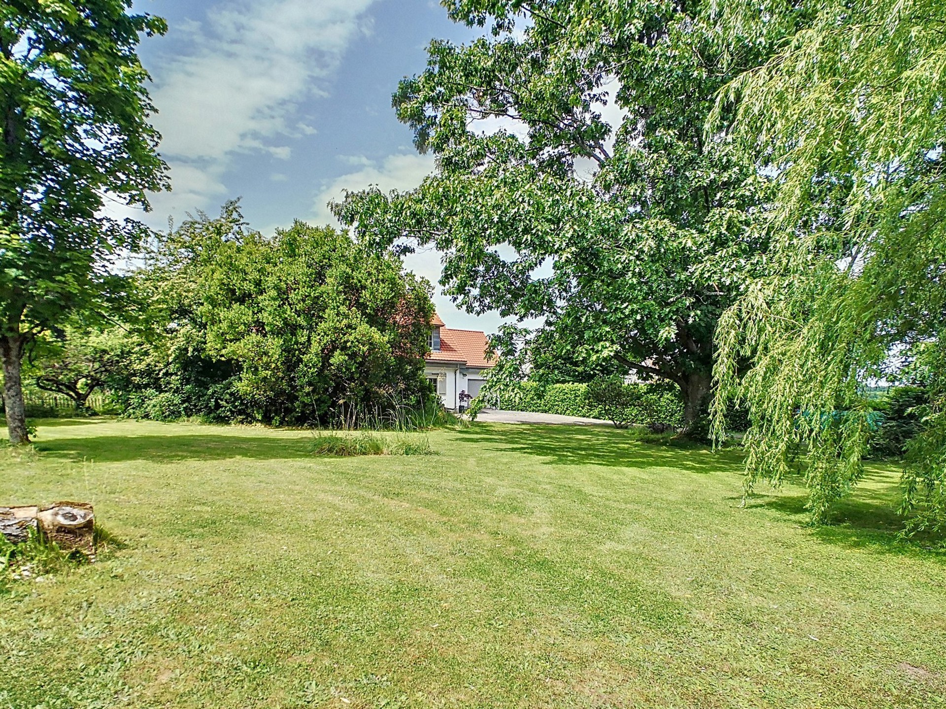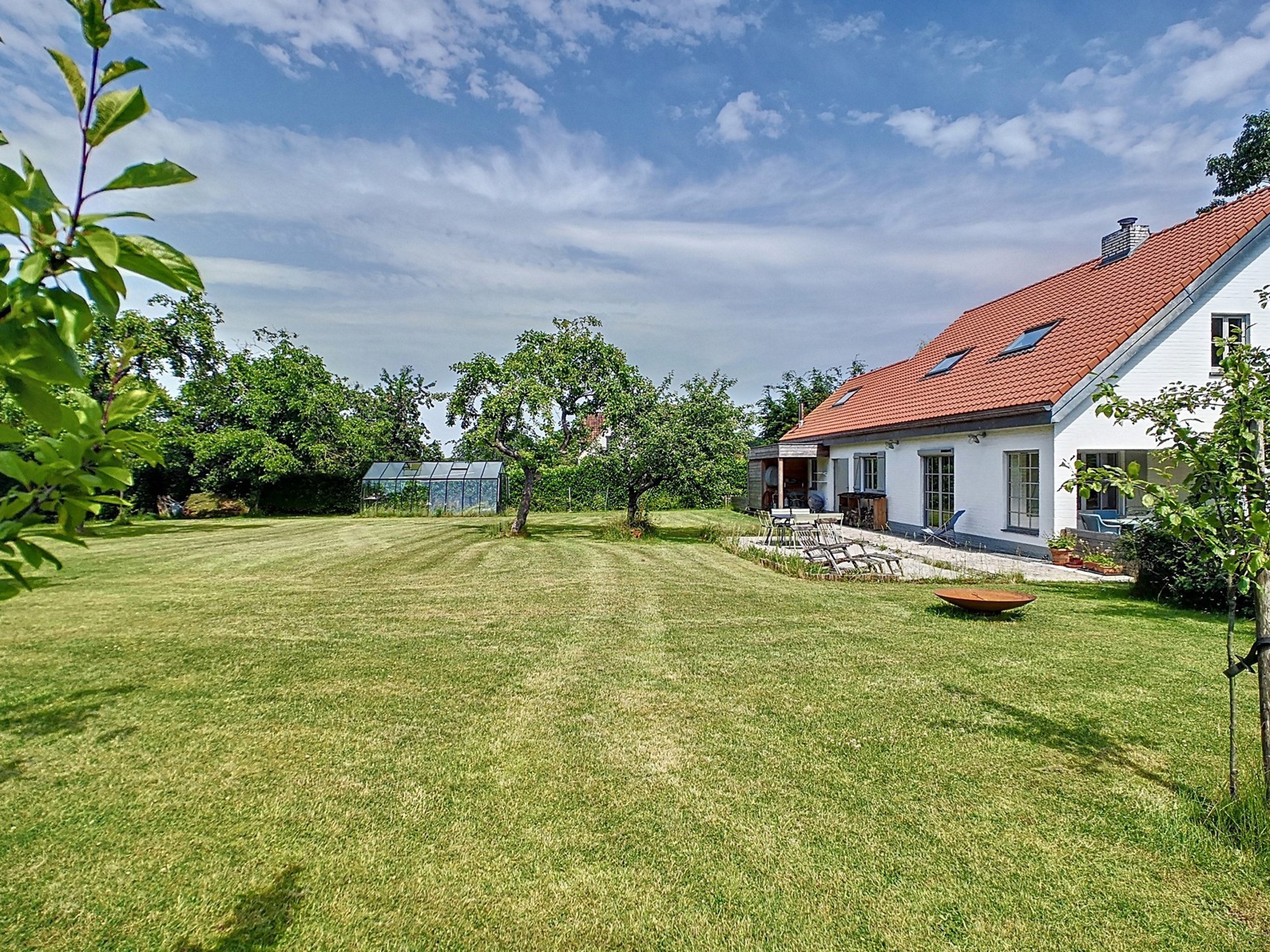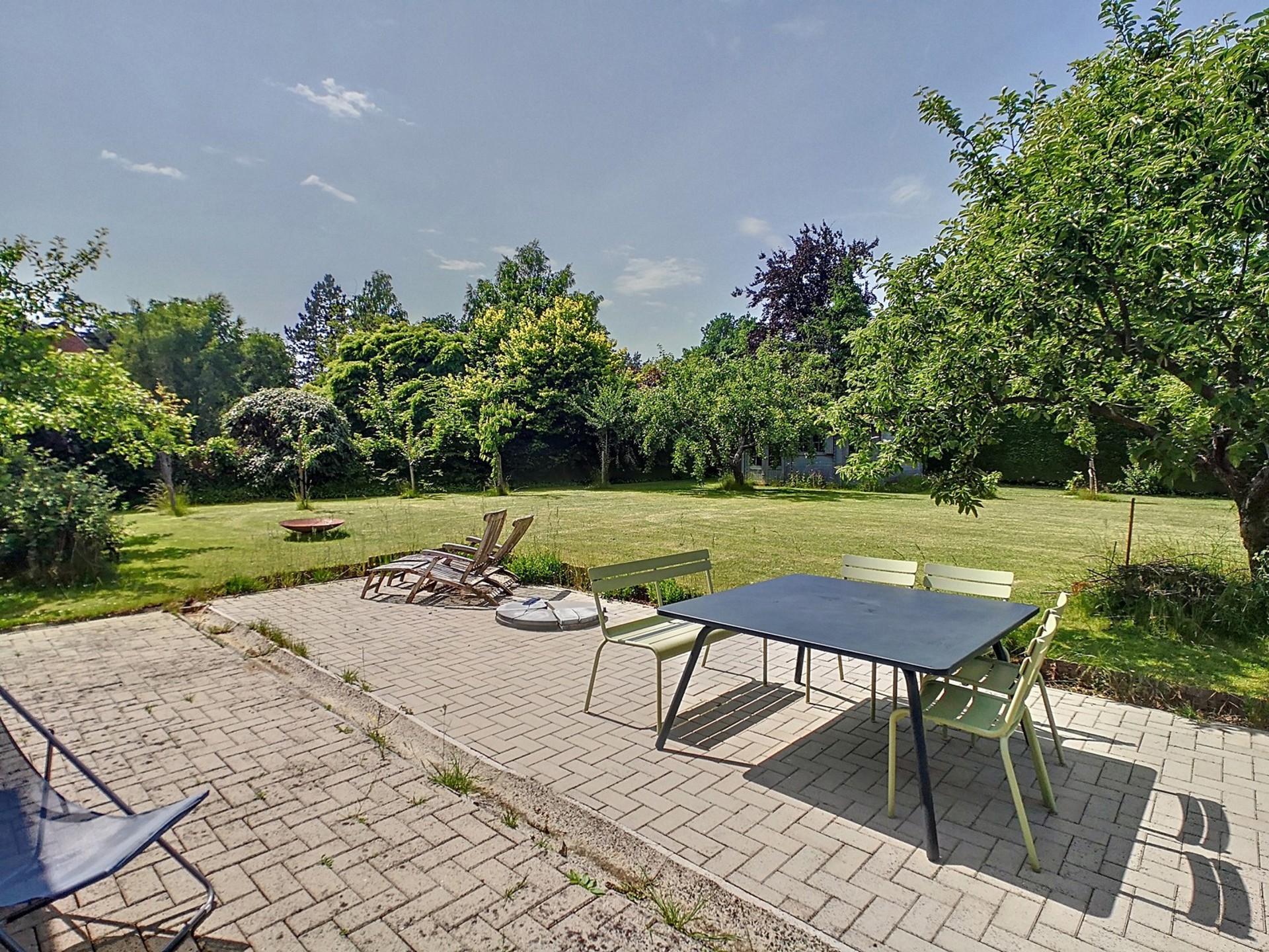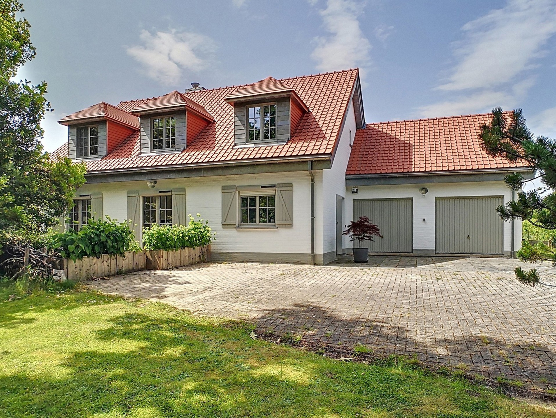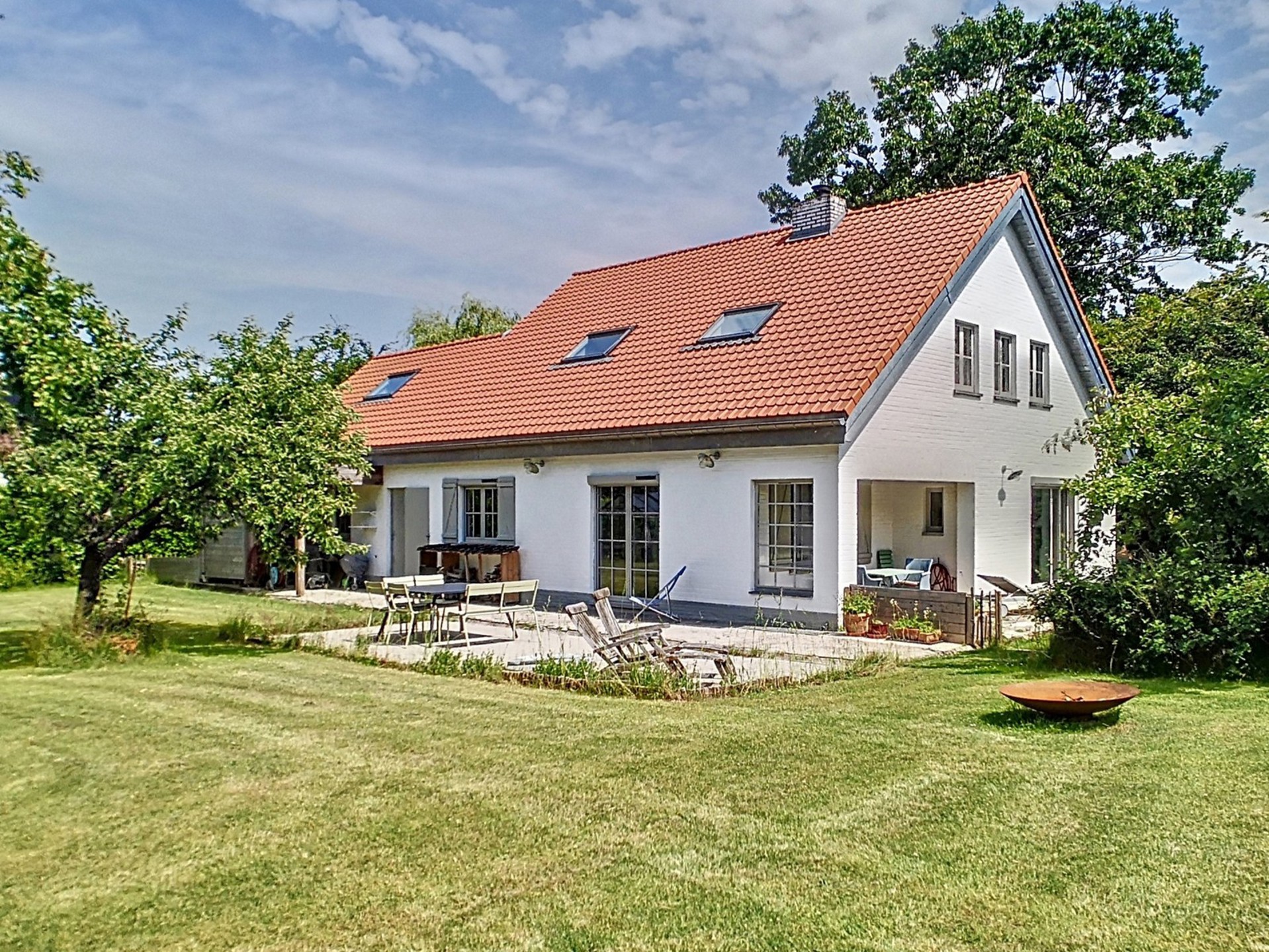 Orientation : jardin à l’avant au Sud-S/E, jardin à l’arrière/terrasses à l’Ouest.