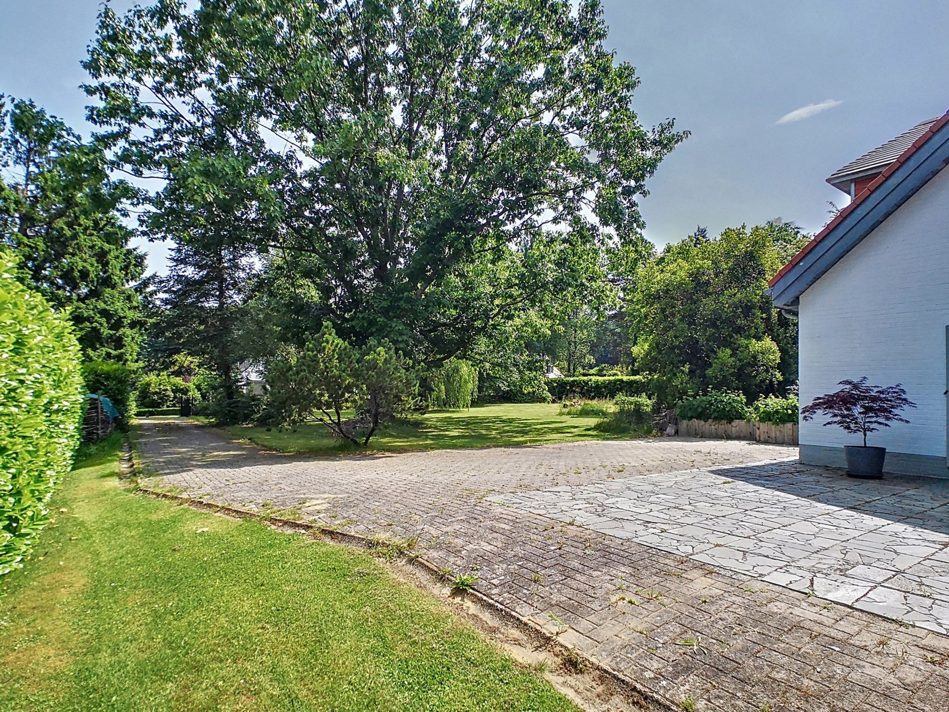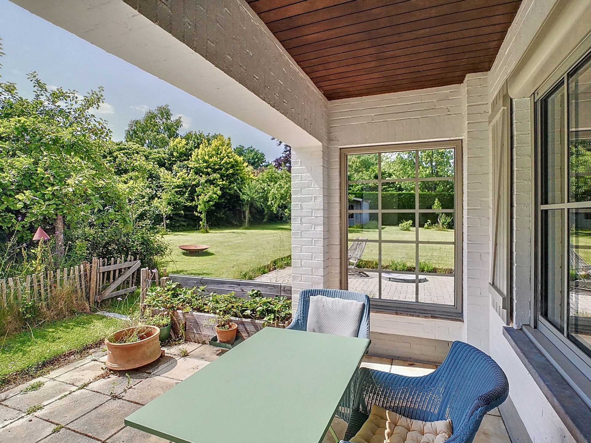 Terrasse spacieuse à l’arrière et petite terrasse couverte sur le côté.