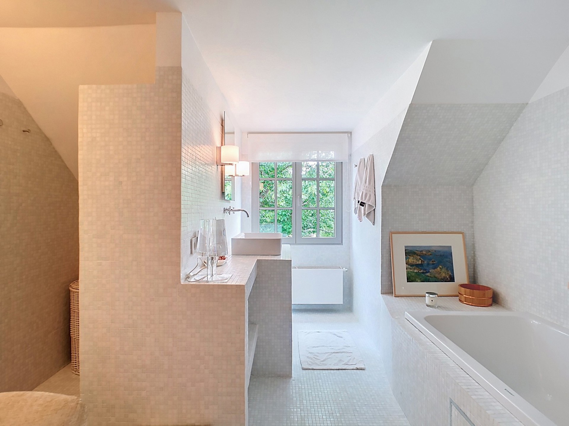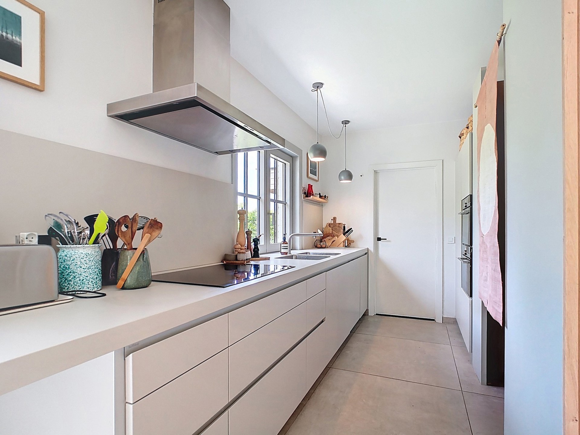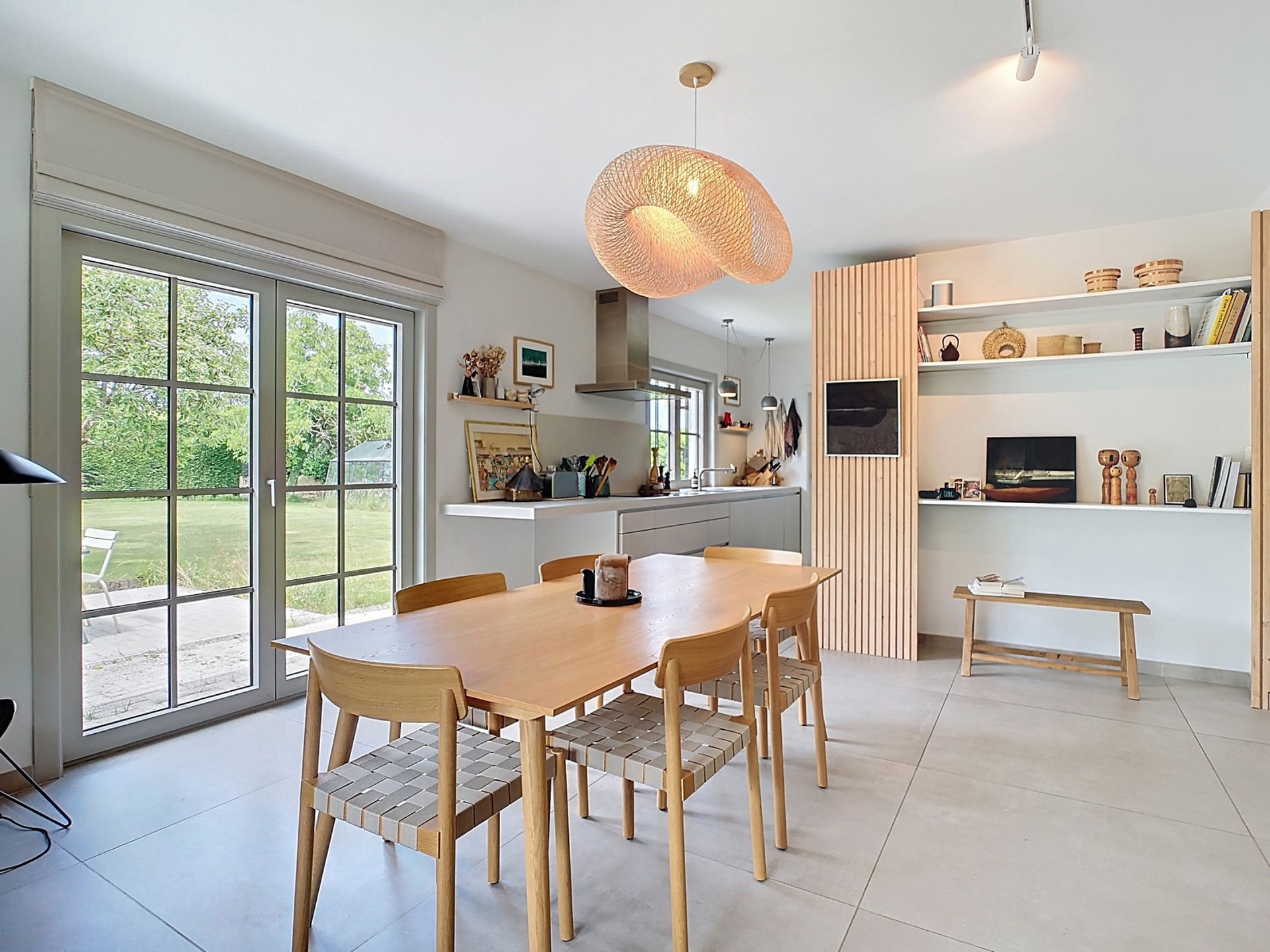 salle à manger lumineuse, cuisine américaine neuve signée Bulthaup,