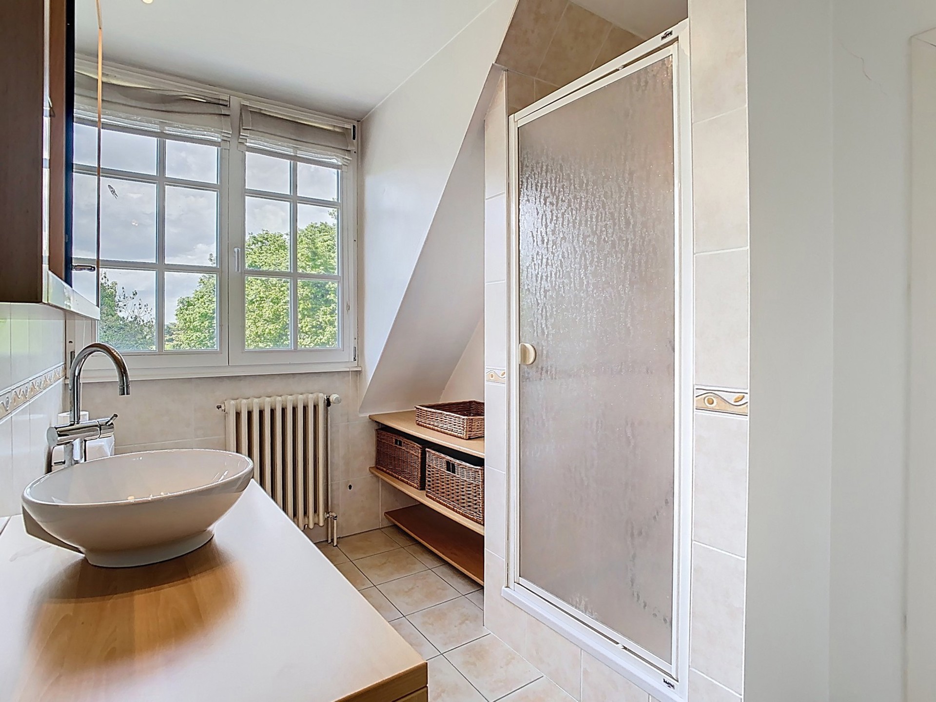 Chambre 1 de 13 m² avec salle de douches attenante (meuble lavabo, douche et toilette).