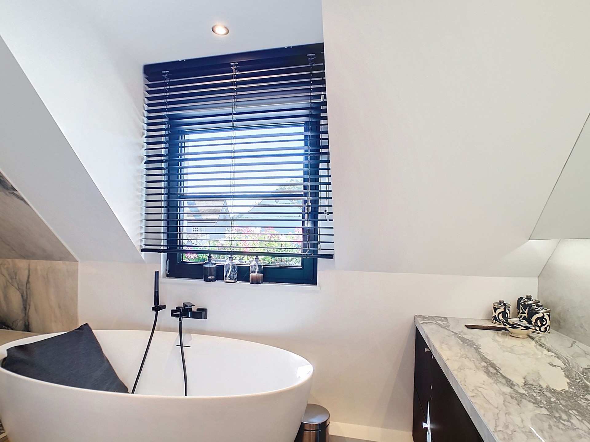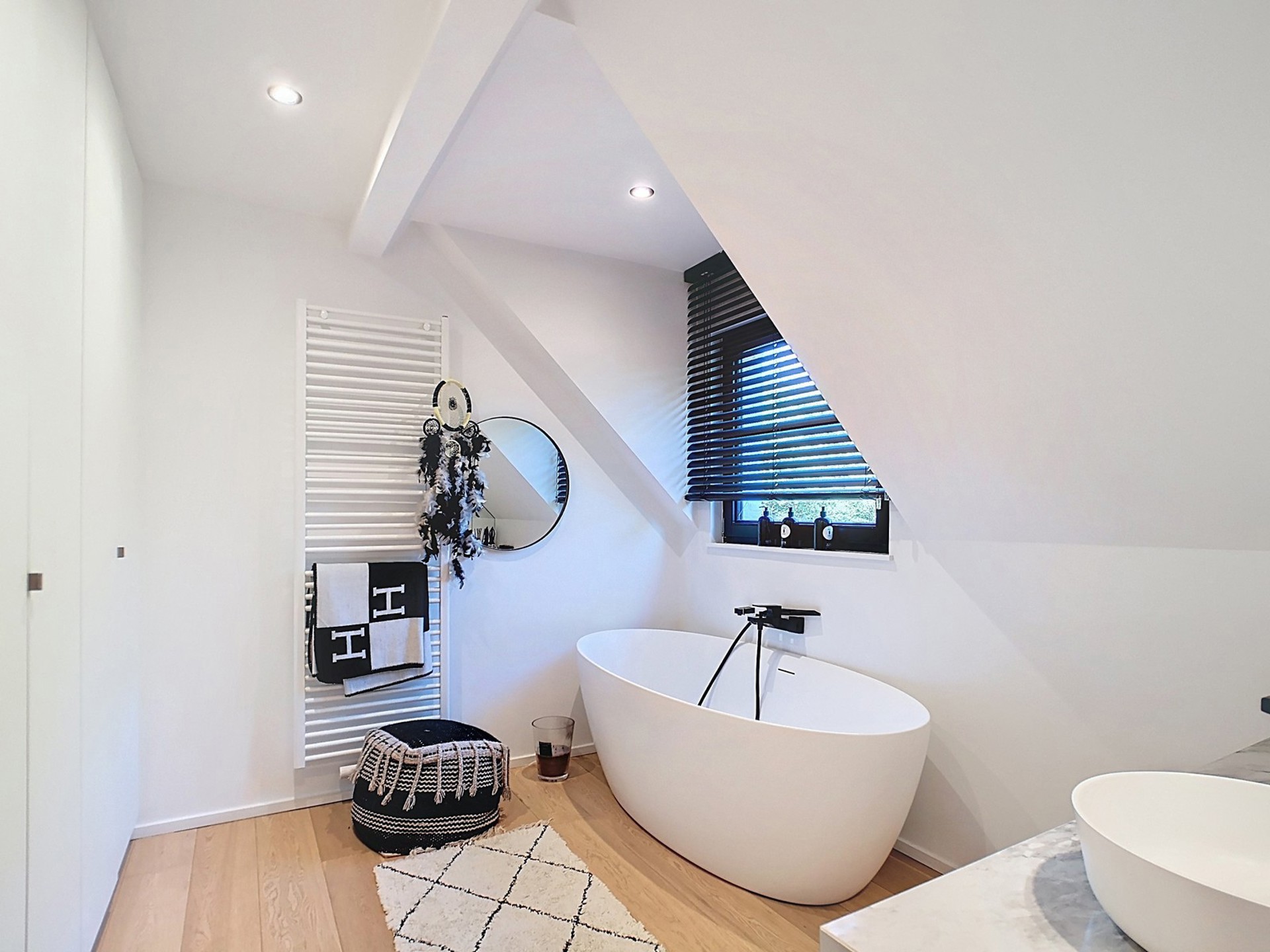– Salle de bains (meuble vasque, grande douche italienne, baignoire îlot ovale – Sonos)