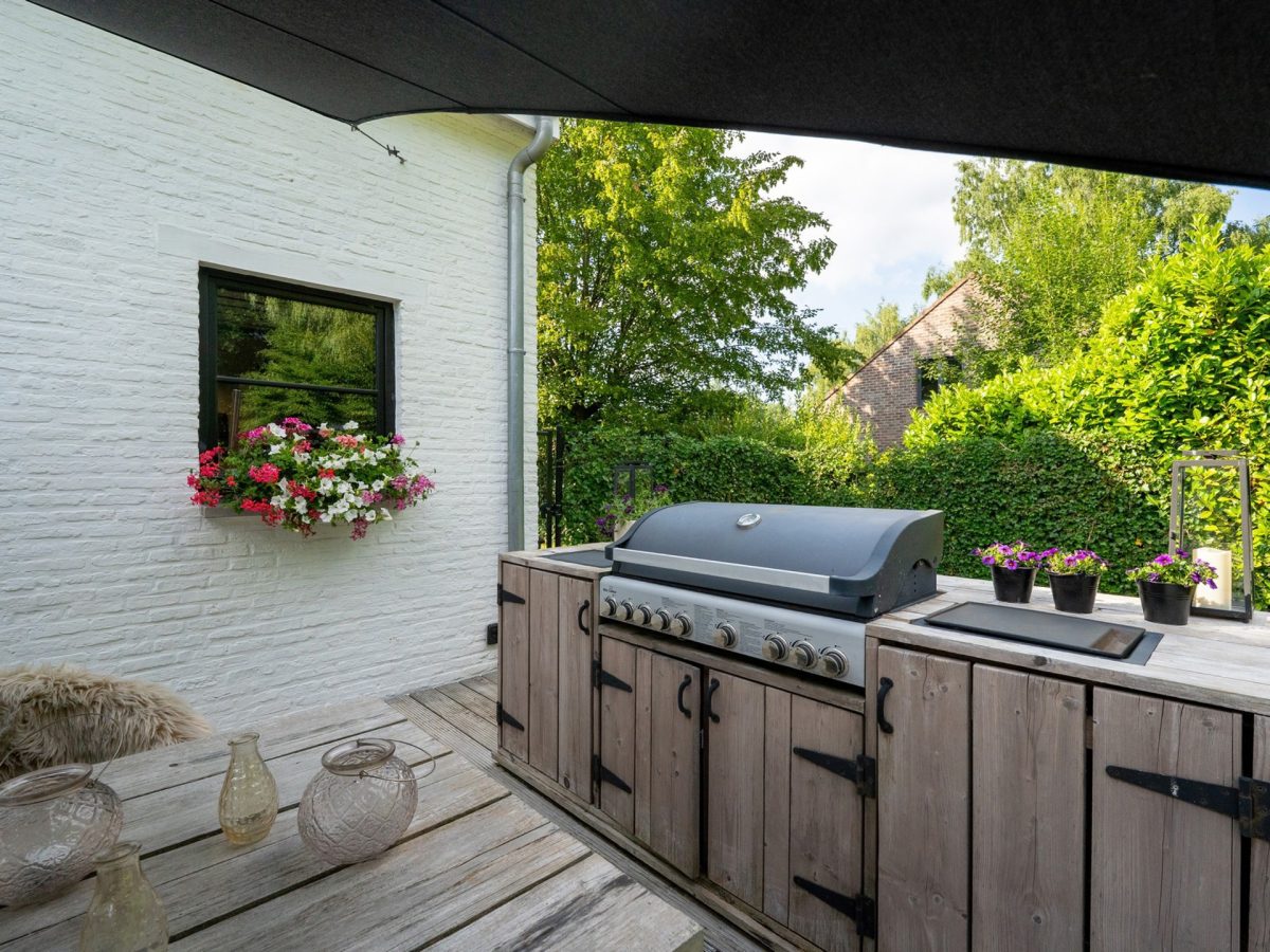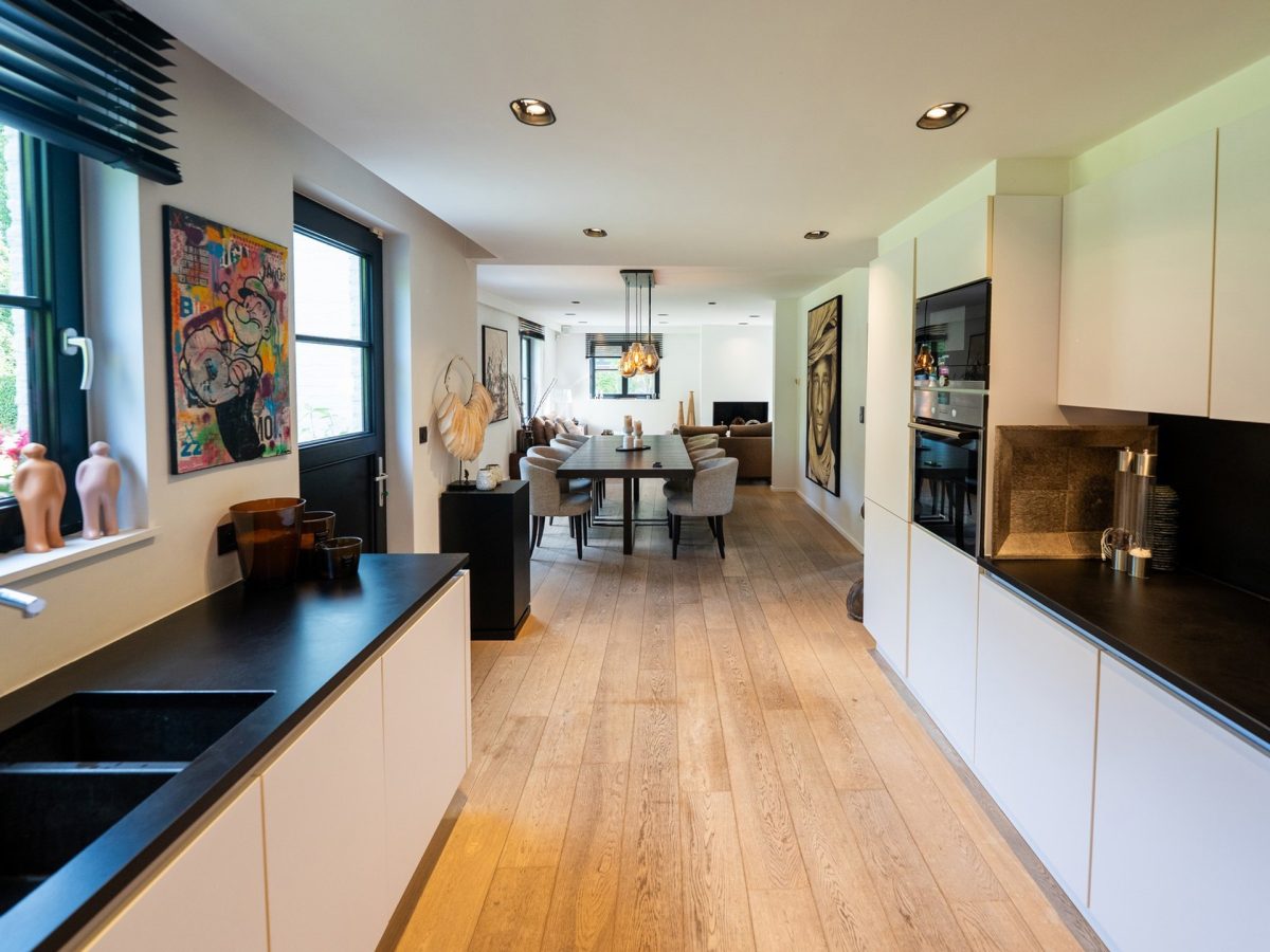 Cuisine super équipée (2015) de 14 m² ouverte sur le séjour, avec accès vers l’extérieur.