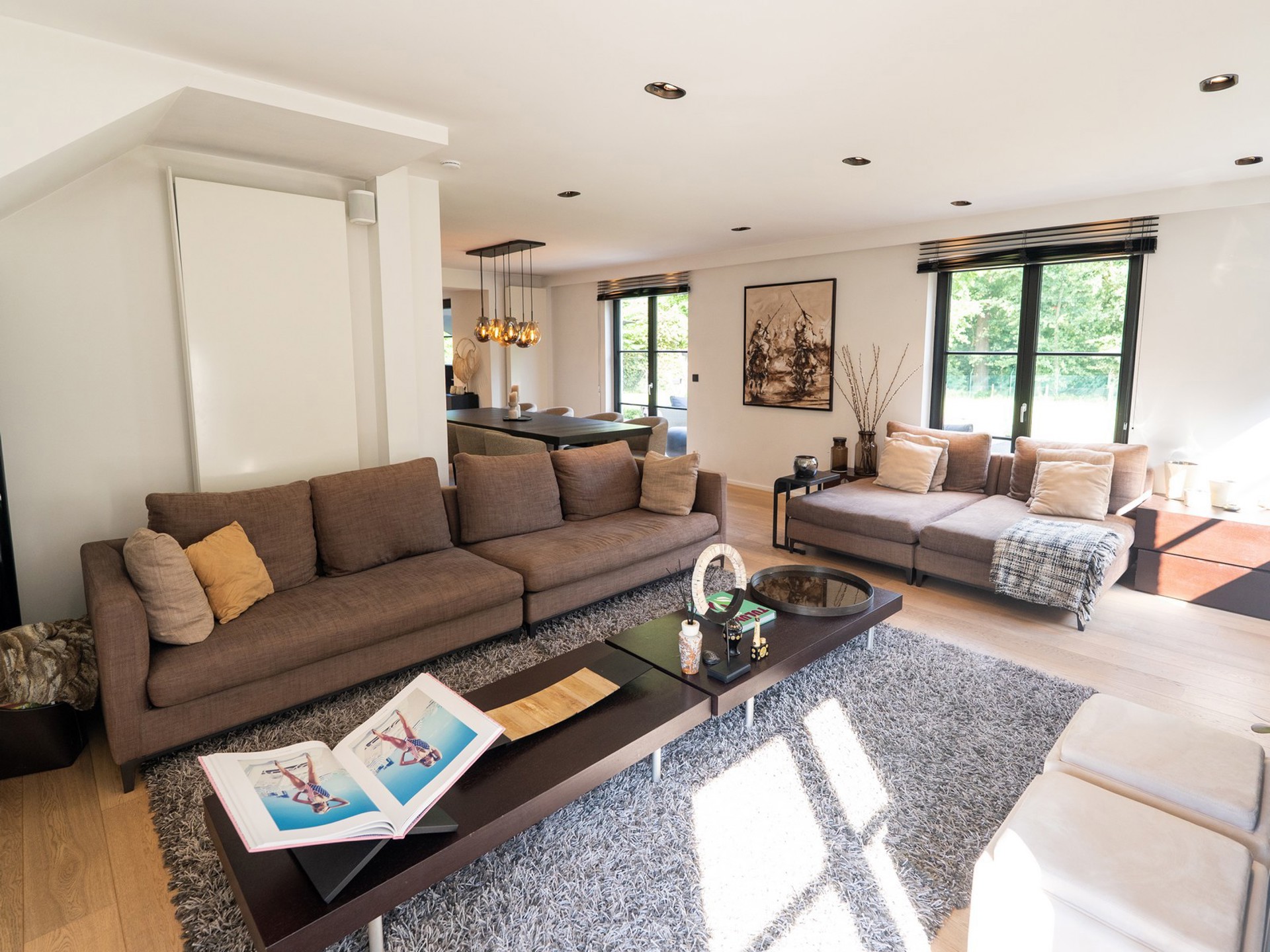 La villa comprend : séjour spacieux et lumineux avec feu ouvert,