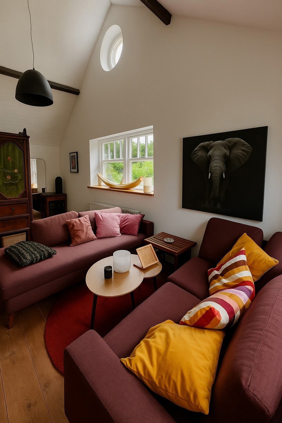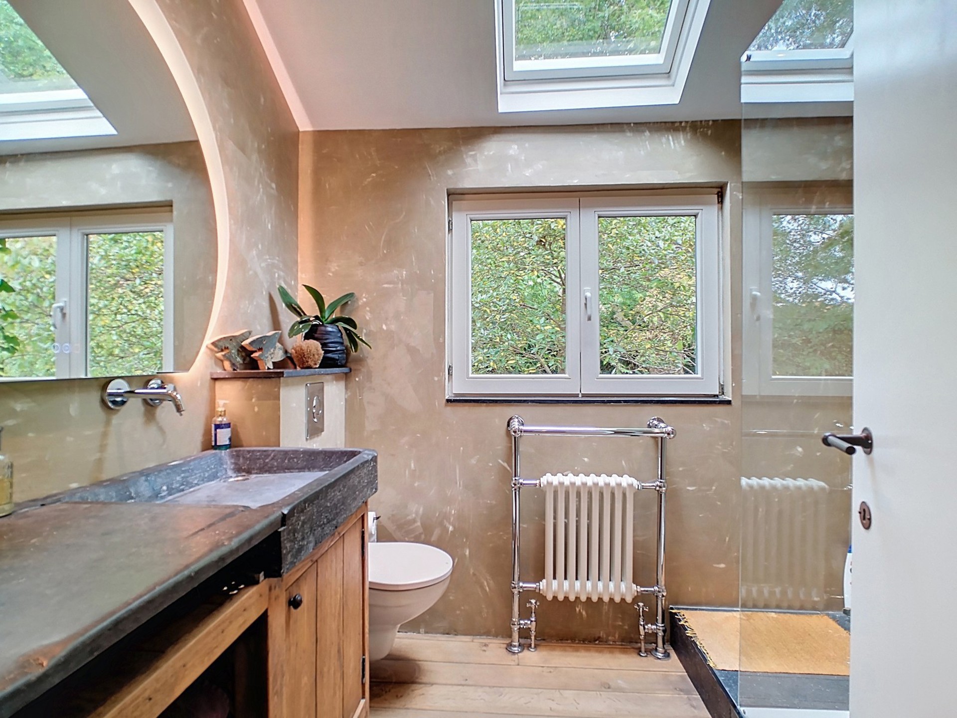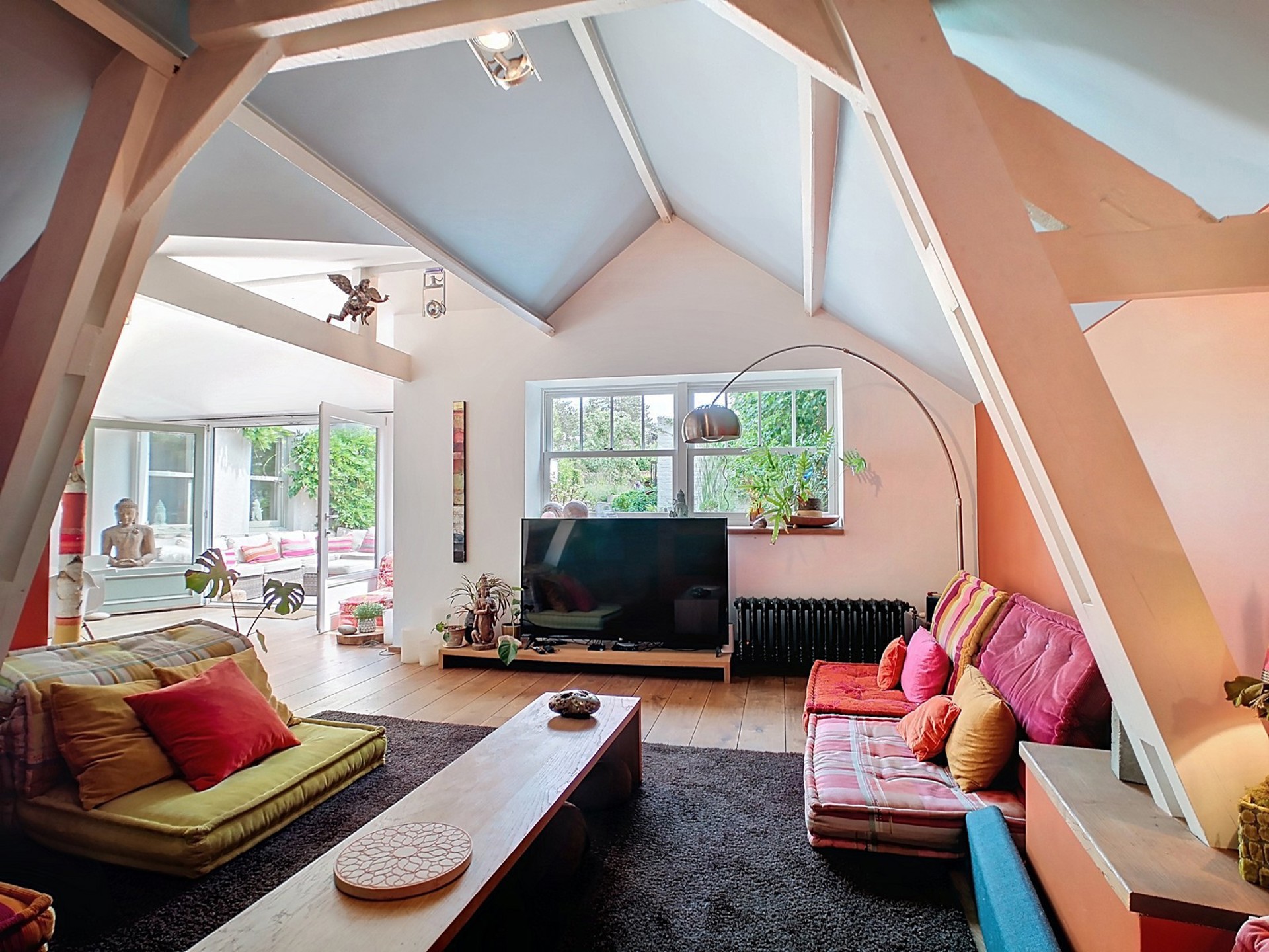 Chambre 5 parentale de 45 m², vaste et lumineuse avec coin salon, grande mezzanine et belle vue sur les abords (présence de 4 velux + grande fenêtre hublot).