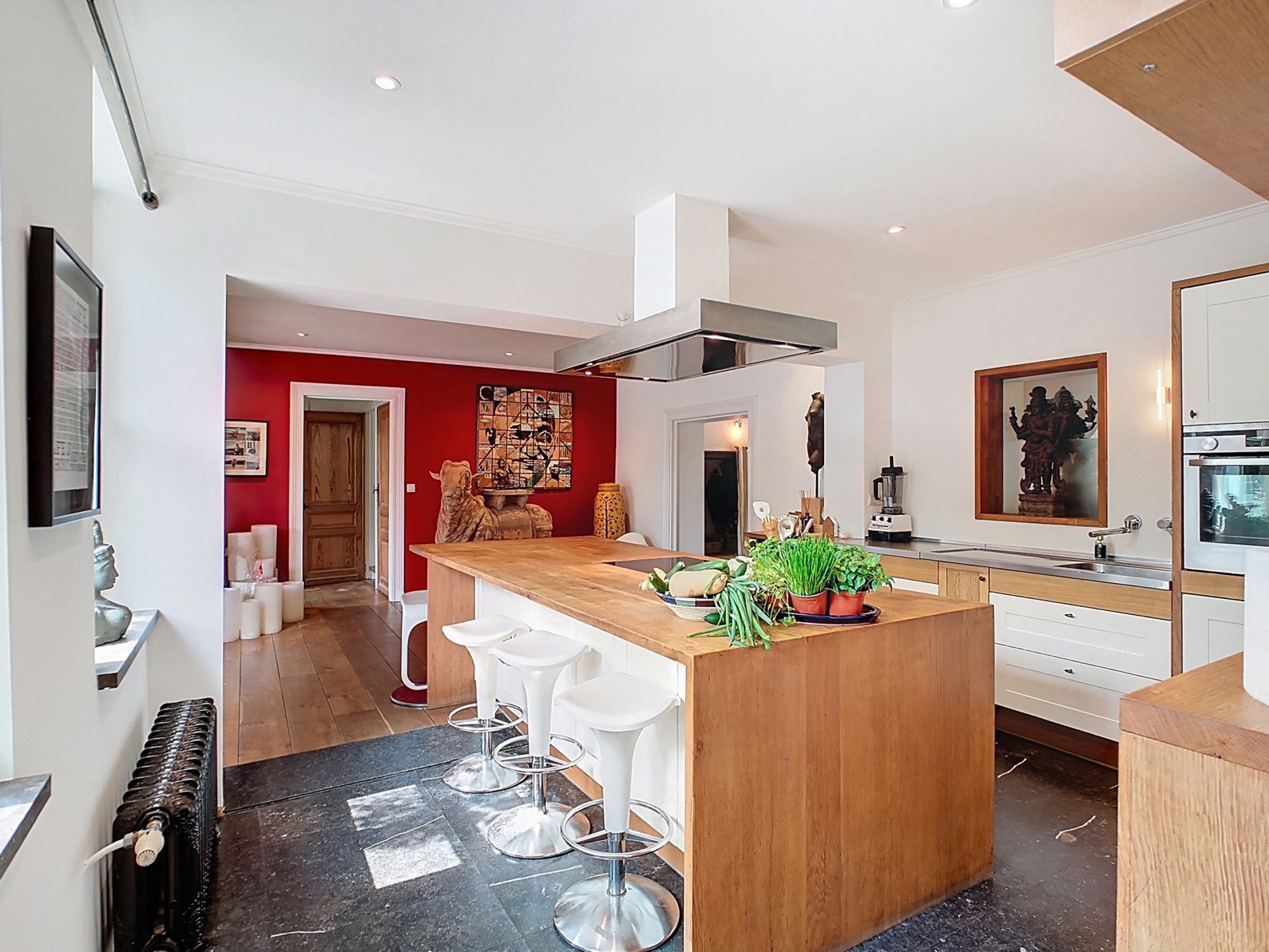 Cuisine spacieuse de 33 m² avec ilot central / coin à déjeuner, ouverte sur le séjour.