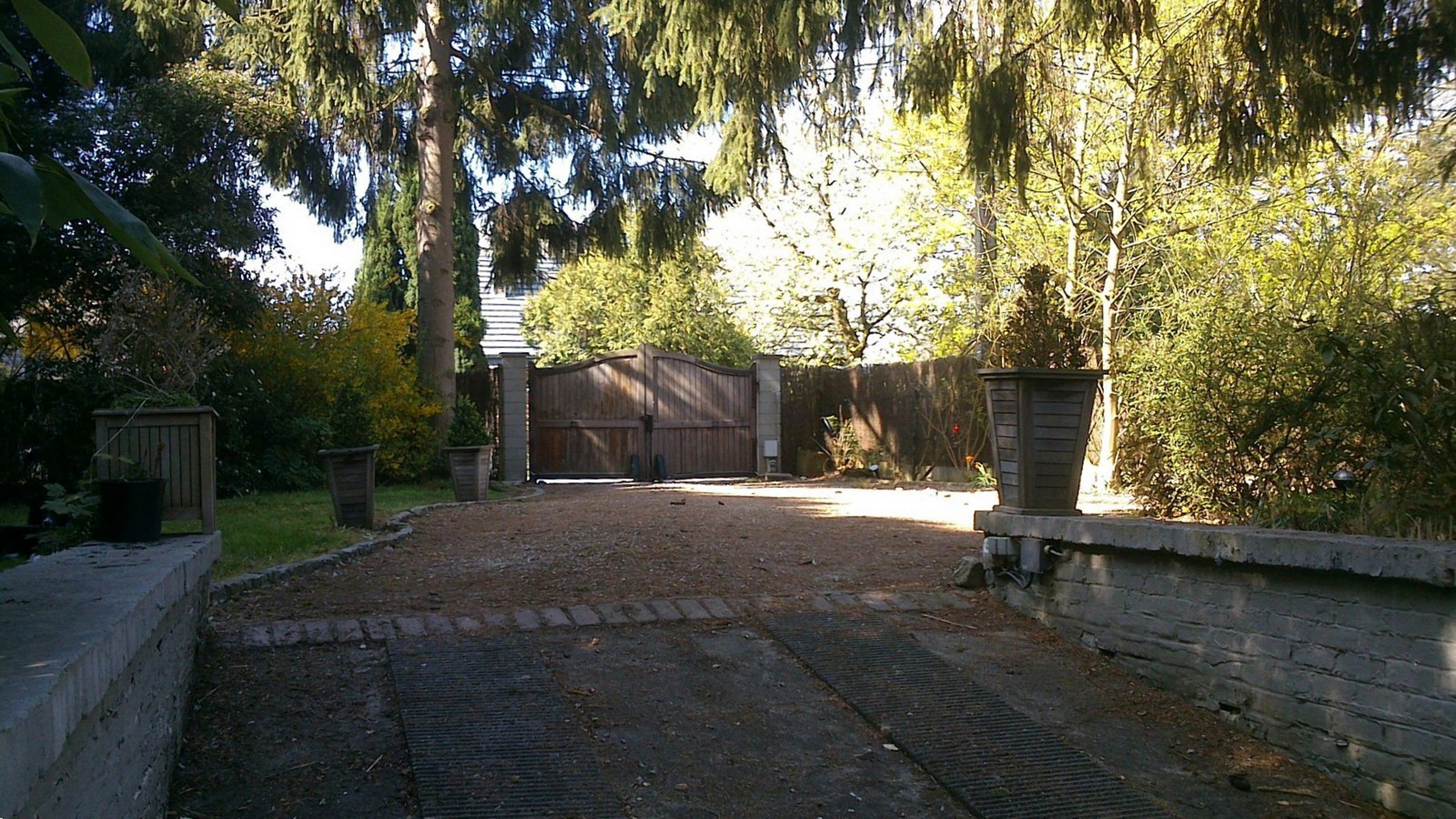 Portail en bois (présence d’arrivée électrique offrant la possibilité de motoriser le portail).