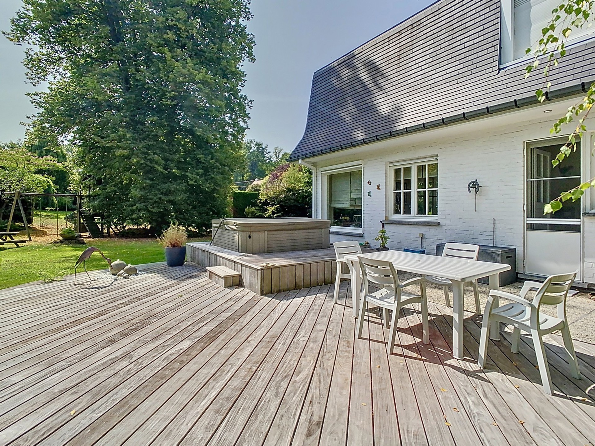 Terrasse avec tente solaire et jacuzzi neuf.