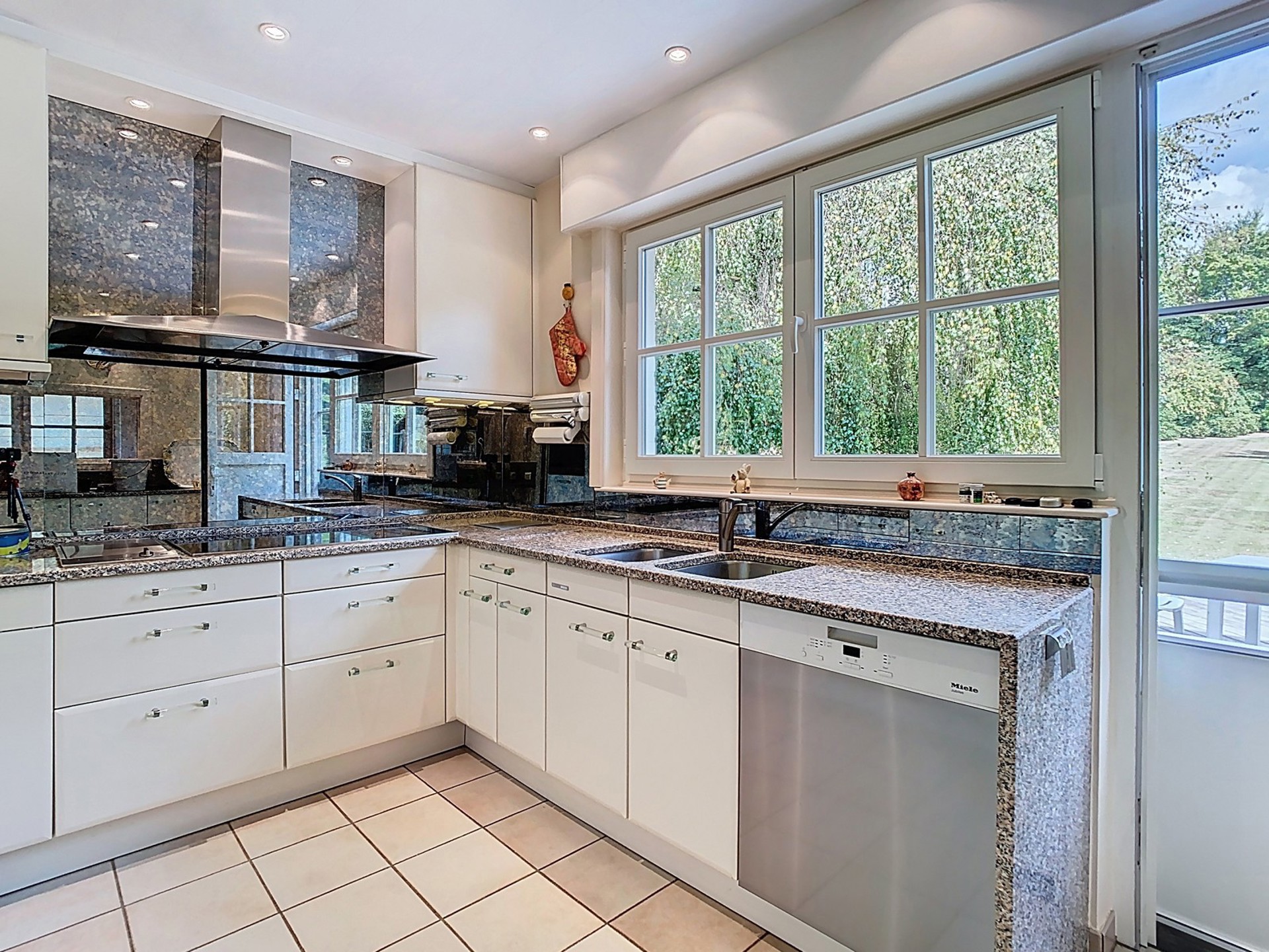 Cuisine équipée de 10,5 m² avec coin à déjeuner de 11 m² et accès au jardin.